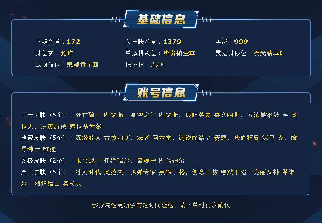 ~~喜欢记得收藏~~可排位~~1300皮全英雄丨90神话/至臻/海克斯/灰烬丨蓝龙瞎/龙的传人丨KDA套丨穿星赵信丨甜心琴女丨觅心幽梦丨玉剑剑姬丨女帝卡特丨虎年赵信丨卧虎藏龙丨甜心格温丨泳池女警丨律动格温丨幻灵瑞文丨替父从军丨FPX锤石丨EDG男枪丨神凰行者霞丨鼠年德莱文丨福牛厄斐琉斯丨神龙尊者李青丨灵魂莲华瑞文丨至高天奎桑提丨电玩卡莎瑞文丨青花瓷光辉ez丨星守佐伊狐狸风女ez~~租之前尽量查一下游戏ID,确保段位是您需要的,避免浪费您的时间~~请勿挂机逃跑故意送人头,谢谢合作,谢谢~~
