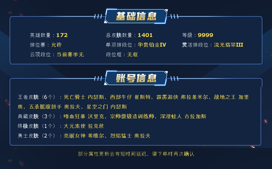 ~~喜欢记得收藏~~可排位~~1306皮全英雄~~租之前尽量查一下游戏ID,确保段位是您需要的,避免浪费您的时间~~请勿挂机逃跑故意送人头,谢谢合作,谢谢~~