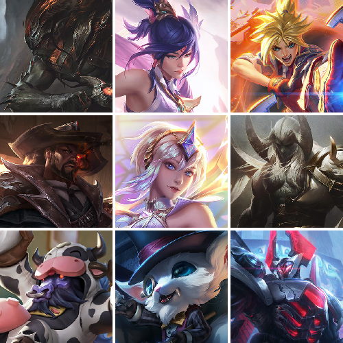 【重要皮肤】绝息圣堂厄运小姐至臻 魅惑女巫莫甘娜至臻 魔女乐芙兰至臻 真实伤害赛娜至臻 福牛守护者菲奥娜至臻 神龙尊者均衡之龙沃利贝尔至臻 征服者贾克斯至臻 KDA二代卡莎至臻 KDA阿狸至臻 KDA阿狸2022至臻 烈焰美人薇恩至臻 烈焰美人薇恩2022至臻 魅惑女巫厄运小姐至臻 源计划正义艾瑞莉娅至臻 源计划正义艾瑞莉娅2022至臻 腥红之月亚托克斯至臻 腥红之月亚托克斯2022至臻 未来战士锤石至臻 未来战士锤石2022至臻 海克斯科技雷克顿 海克斯科技斯维因 海克斯科技吉格斯 海克斯科技玛尔扎哈 海克斯科技波比 海克斯科技崔丝塔娜 零之枪骑赫卡里姆 新创战纪希维尔 胜利剑圣易 胜利女神娑娜 胜利女神希维尔 胜利之王泰达米尔 胜利巨口克格莫 创星之灵璐璐 养蜂人辛吉德 电玩女神厄运小姐 电玩勇者锐雯 北辰之威内瑟斯 美猴王孙悟空 广寒仙子嫦娥 胜利之剑亚托克斯 甜心之翎洛 觅心之翼奎因 魄罗骑士瑟庄妮 平安夜女神娑娜 魅惑女巫奈德丽 灵魂收割者索拉卡 泳池派对奥莉安娜 泳池派对塔莉垭 御星魔矢艾希 制胜金球拉莫斯 iG洛 SSG塔莉垭 SKTT1烬 SKTT1阿兹尔 SSW雷恩加尔 SSW图奇 SSW辛吉德 SKTT1劫 暗杀星蒙多 暗杀星慎 Fnatic迦娜 Fnatic古拉加斯 防暴士兵格雷福斯 防暴士兵辛吉德 防暴天使凯尔 钢铁之翼艾尼维亚 冠军之血希瓦娜 鬼影森森茂凯 鬼影重重魔腾 惊悚派对阿木木 惊悚派对费德提克 密林猎手提莫 南瓜头费德提克 圣诞开心鬼提莫 圣诞老人古拉加斯 圣诞玩偶波比 糖果使徒费德提克 喜庆之树茂凯 邪恶圣诞老人维迦 雪默丁格 野兽猎人德莱文 野兽猎人瑟庄妮 野兽猎人泰达米尔 暗影沃里克 波比的巧克力工坊 都铎王朝图奇 十五周年纪念希维尔 十周年纪念安妮 源代码乐芙兰 神凰行者瑞羽圣凰艾尼维亚 大元素使拉克丝 灵魂守卫乌迪尔 绝息圣堂洛