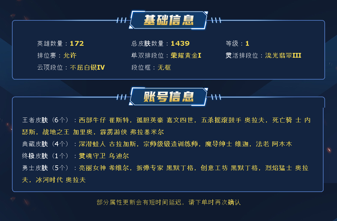 ~~喜欢记得收藏~~可排位~~1352皮全英雄~~租之前尽量查一下游戏ID,确保段位是您需要的,避免浪费您的时间~~请勿挂机逃跑故意送人头,谢谢合作,谢谢~~