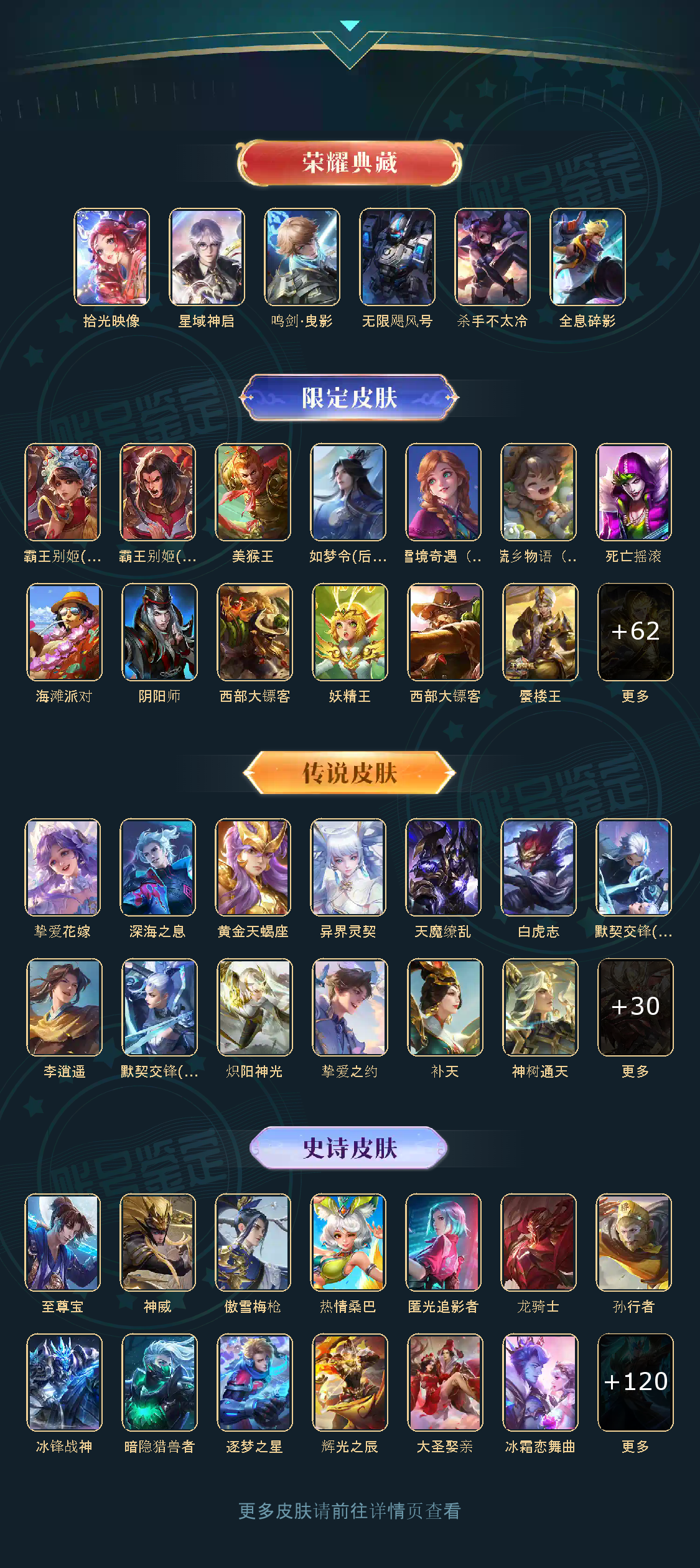贵族等级V10,英雄数量124,典藏皮肤数5,皮肤数量427,