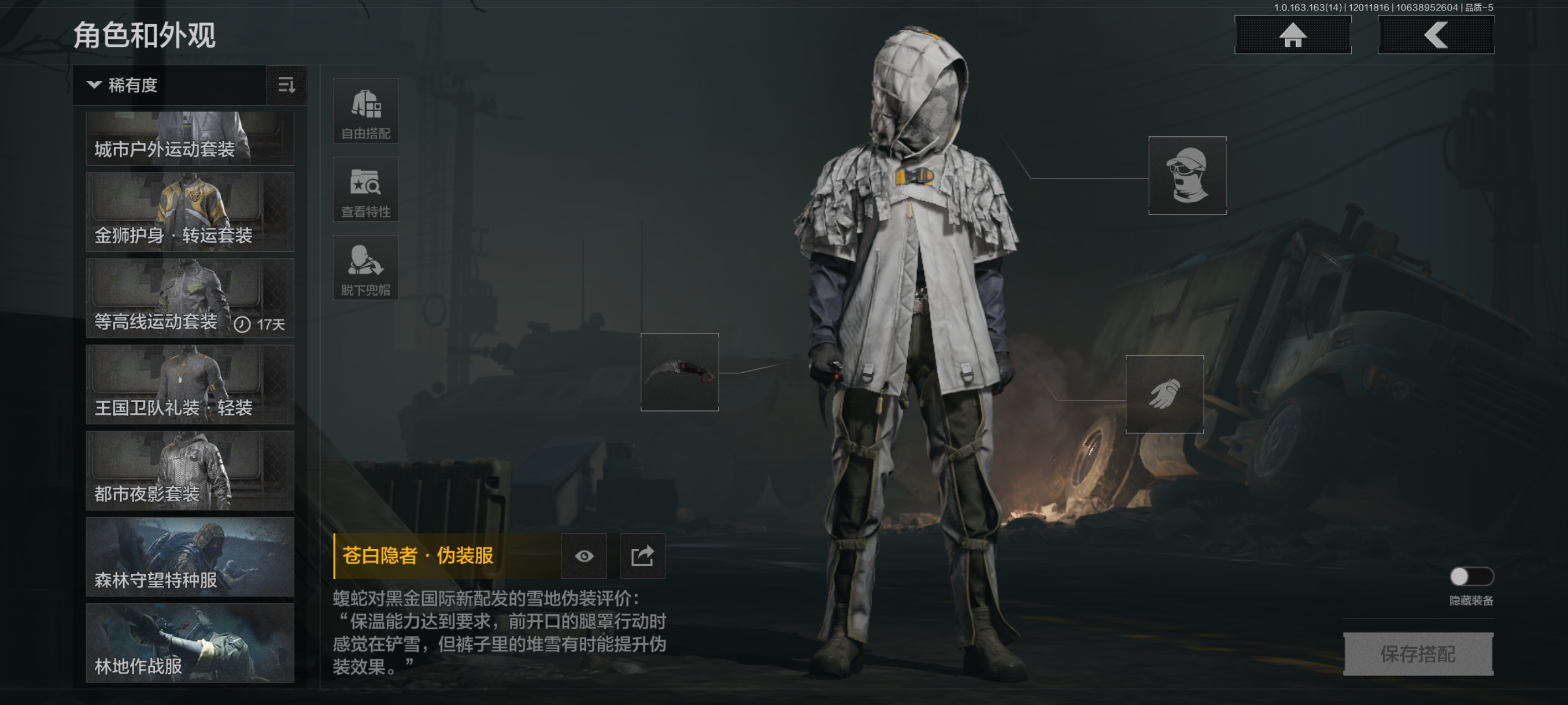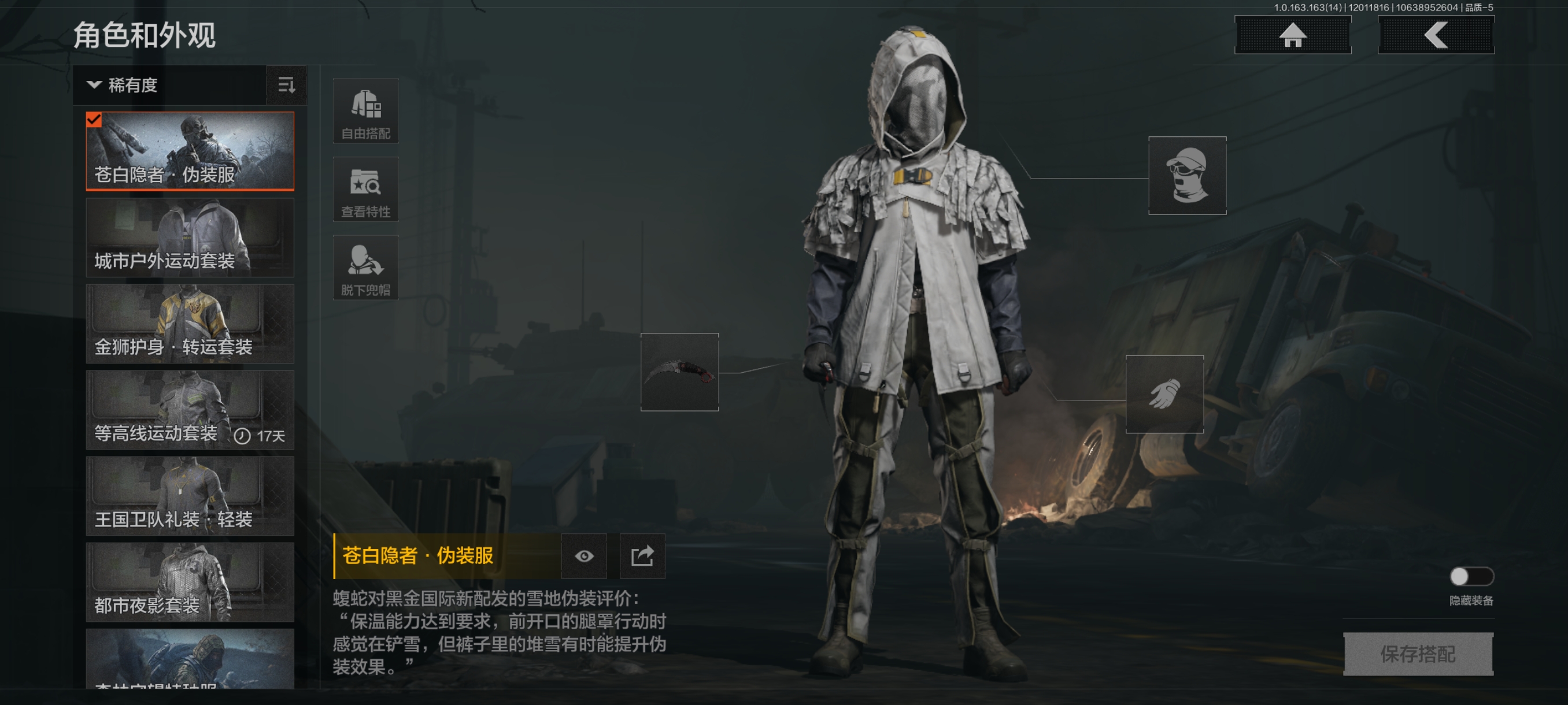【安卓】 5刀8皮7金枪,下弦月,裁决手杖剑,突击匕首,苍白隐者伪装服,城市户外运动套装,金狮护身转运套装,
