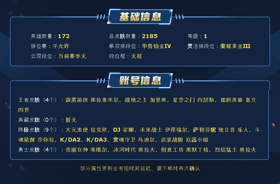 出现异常多登录几次即可!!!电一艾欧尼亚丨1200原皮丨联盟不朽签名版卡莎阿狸丨圣天龙李青丨炽天使永恩丨冰原酒桶丨多传说多限定!!!云顶多小小英雄多棋盘!!喜欢记得收藏!租之前建议查一下段位是不是你要的,确保是你需要的再租哦。 请勿挂机送人头!!!很重要!!!发现挂机送人头锁单永久拉黑!!