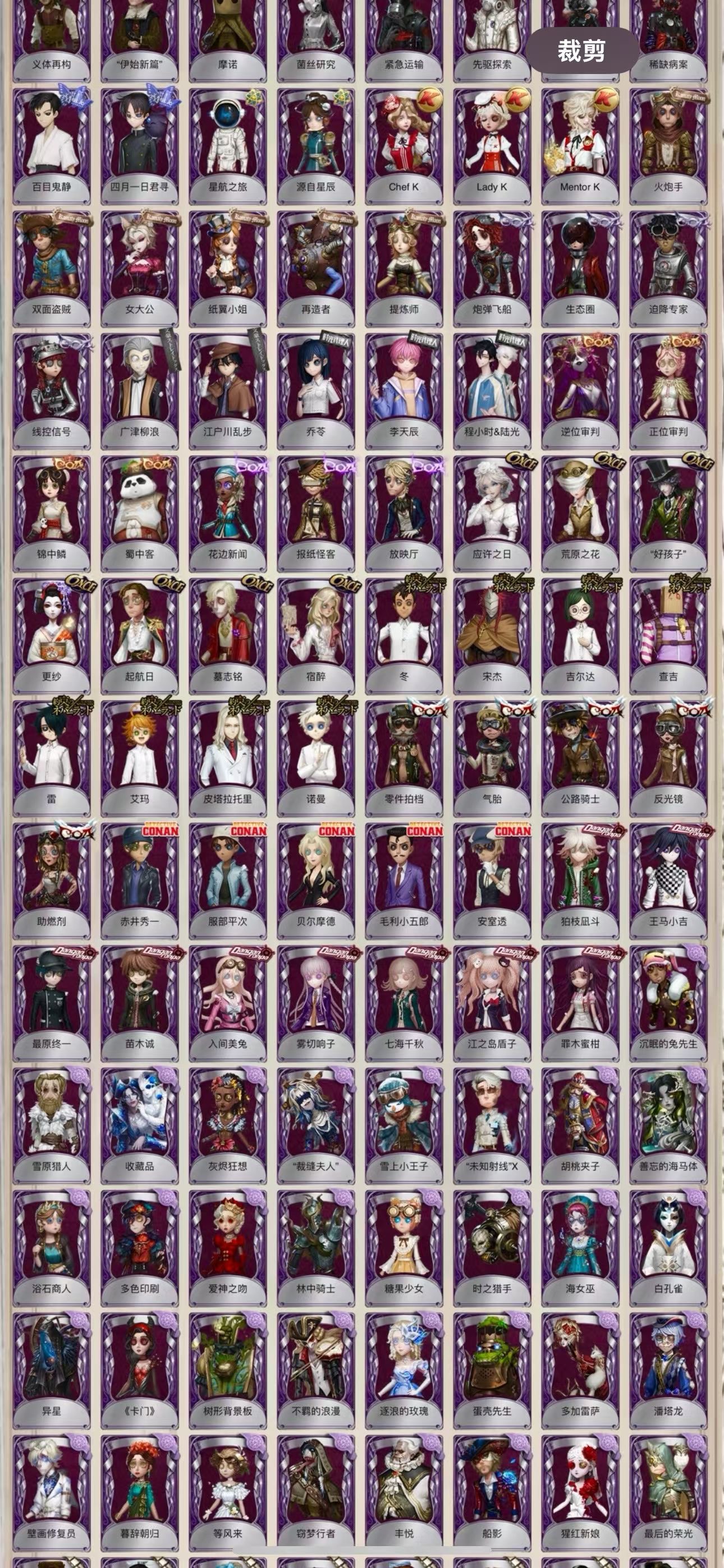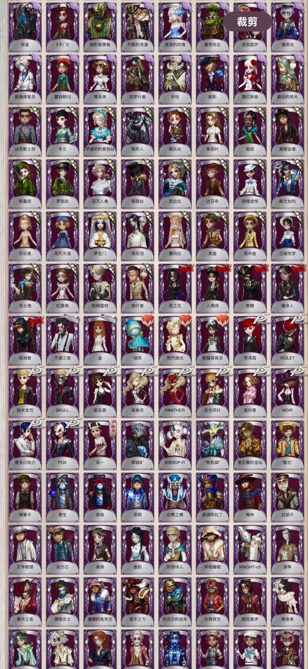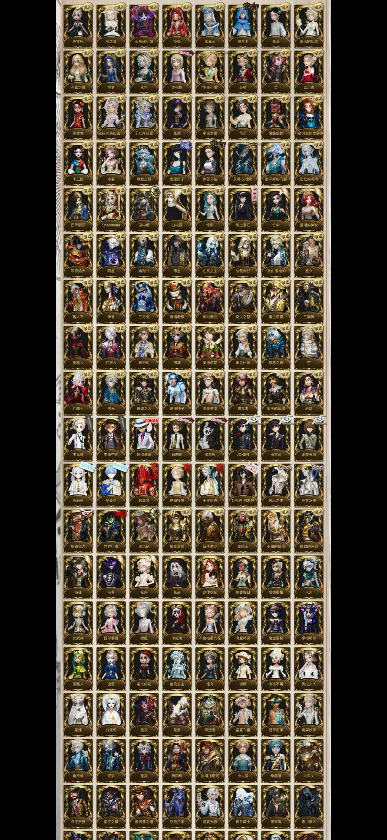 全虚妄全真理/小绵羊/克罗托/索菲亚/白泽/永恒/仙灵/宇宙女巫/苍鹭之翼/石榴碟/心锁/箜篌/荧/试运者/寒香舞/菖蒲/恒梦/司药/惊鸿/陌路仙踪/弓箭手金/速滑种子/欺惑之燕/温泉煮酒/空/壹原侑子/十三娘/赤宴/静默/Checkmate/时空之影限定金/歌剧金/白松露/罪恶熔火/典狱长/亡灵之主/总裁判长/扎克/神眷/哲人石/怒火/驱魔人/红衣人/珍奇柜/黄金比例/圣诞信使/初拥/溯光/逃罪之人/红骑士/猎龙者/日落黄沙/岩鸽/熔岩蛋糕/国王的裁缝/当铺老板/三月兔/文豪中岛敦/中原中也/怪盗基德/日向创/赤松枫/黑白熊/JOKER/弹丸论破/柯南/P5联动/真相小姐(生日快乐)/推理先生/DM/白黯/加特/绯/麒麟商人