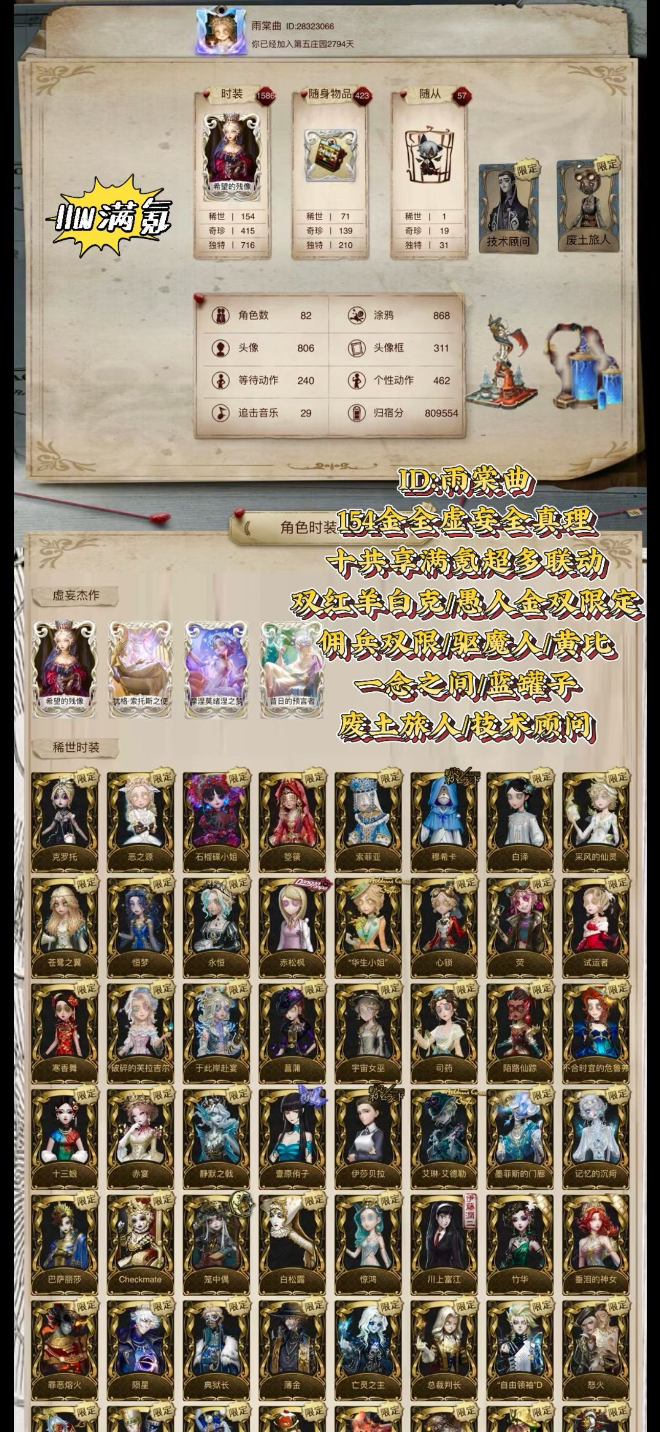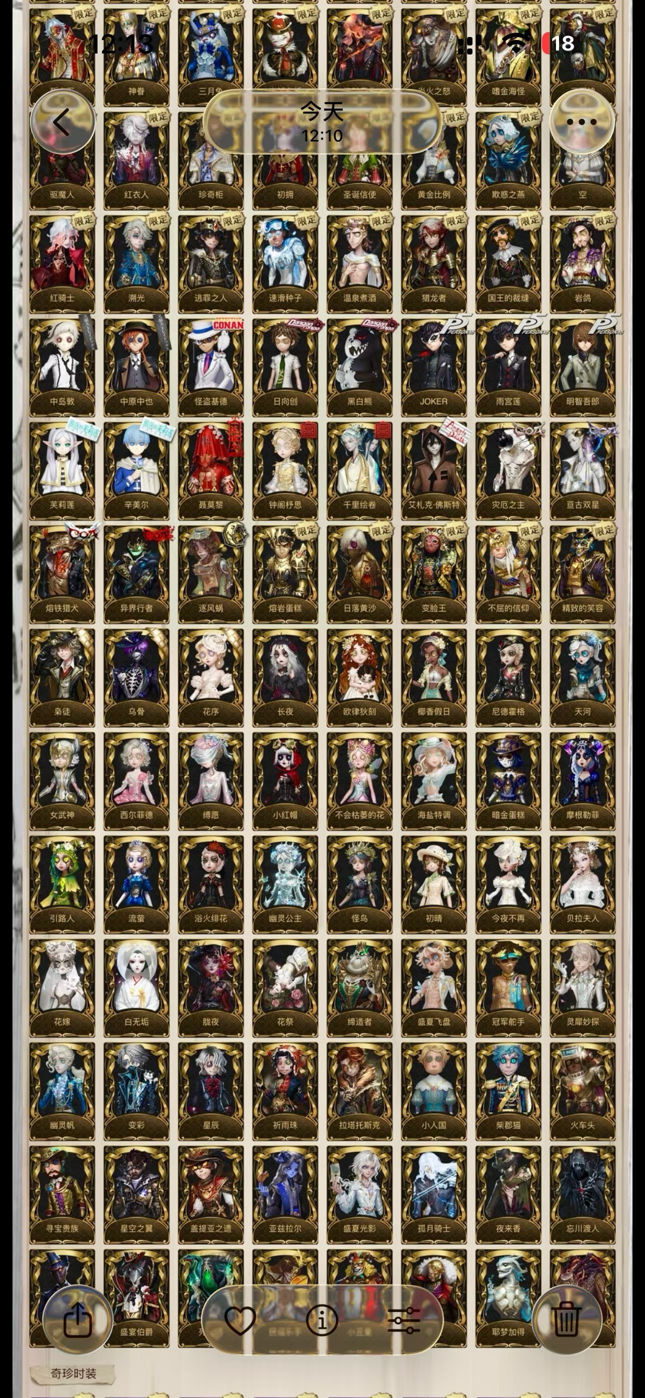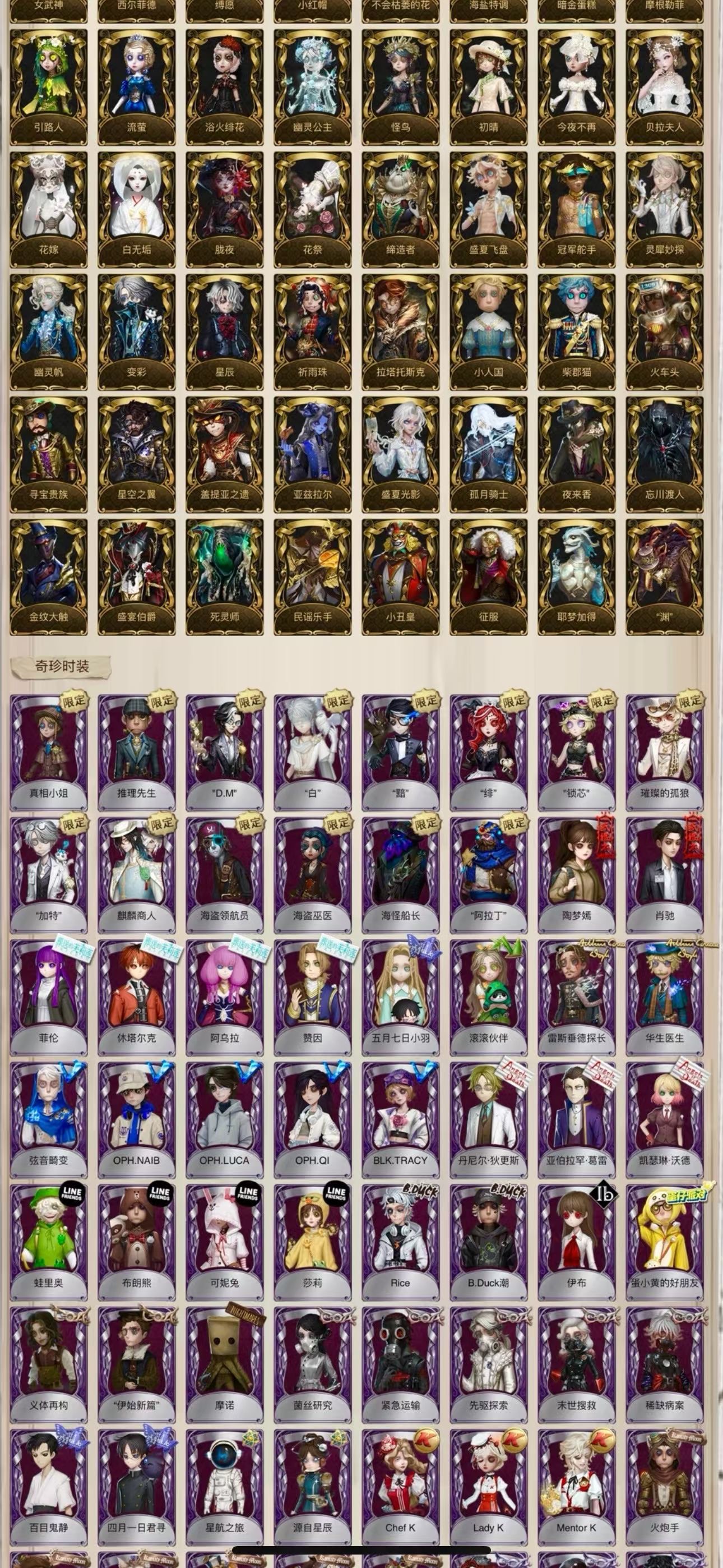 全虚妄全真理/小绵羊/克罗托/索菲亚/白泽/永恒/仙灵/宇宙女巫/苍鹭之翼/石榴碟/心锁/箜篌/荧/试运者/寒香舞/菖蒲/恒梦/司药/惊鸿/陌路仙踪/弓箭手金/速滑种子/欺惑之燕/温泉煮酒/空/壹原侑子/十三娘/赤宴/静默/Checkmate/时空之影限定金/歌剧金/白松露/罪恶熔火/典狱长/亡灵之主/总裁判长/扎克/神眷/哲人石/怒火/驱魔人/红衣人/珍奇柜/黄金比例/圣诞信使/初拥/溯光/逃罪之人/红骑士/猎龙者/日落黄沙/岩鸽/熔岩蛋糕/国王的裁缝/当铺老板/三月兔/文豪中岛敦/中原中也/怪盗基德/日向创/赤松枫/黑白熊/JOKER/弹丸论破/柯南/P5联动/真相小姐(生日快乐)/推理先生/DM/白黯/加特/绯/麒麟商人