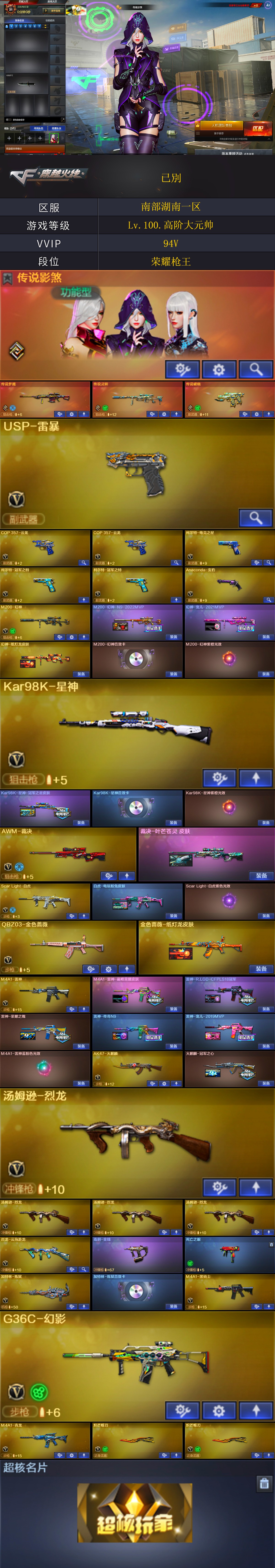 【商品标题】:南部湖南一区-94V-可二次实名-【Lv.100.高阶大元帅】-【段位:荣耀枪王】