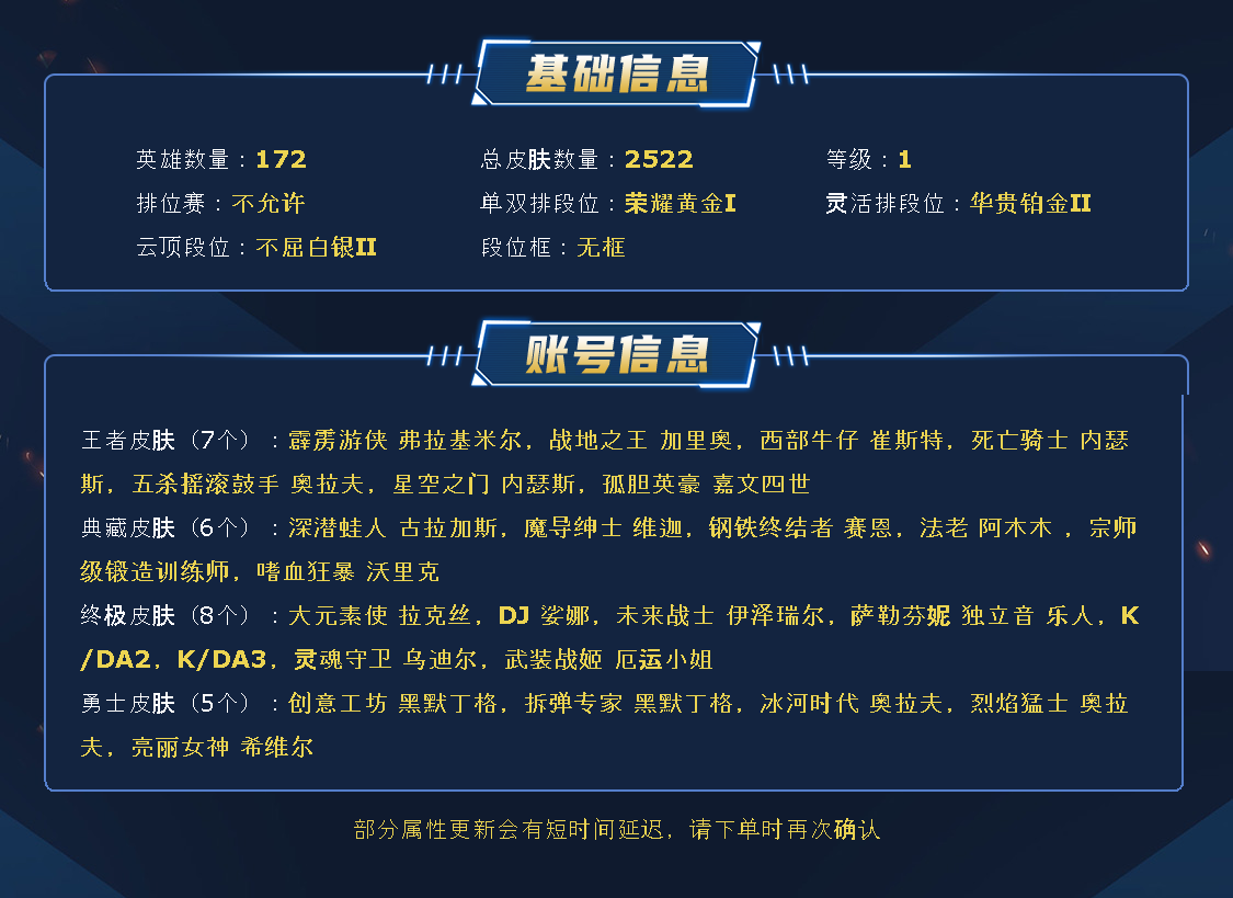 黑色玫瑰原皮1500皮♥️全英雄可下棋可排位/签名阿狸️/8终极❤️141神话至臻❤️294限定❤️