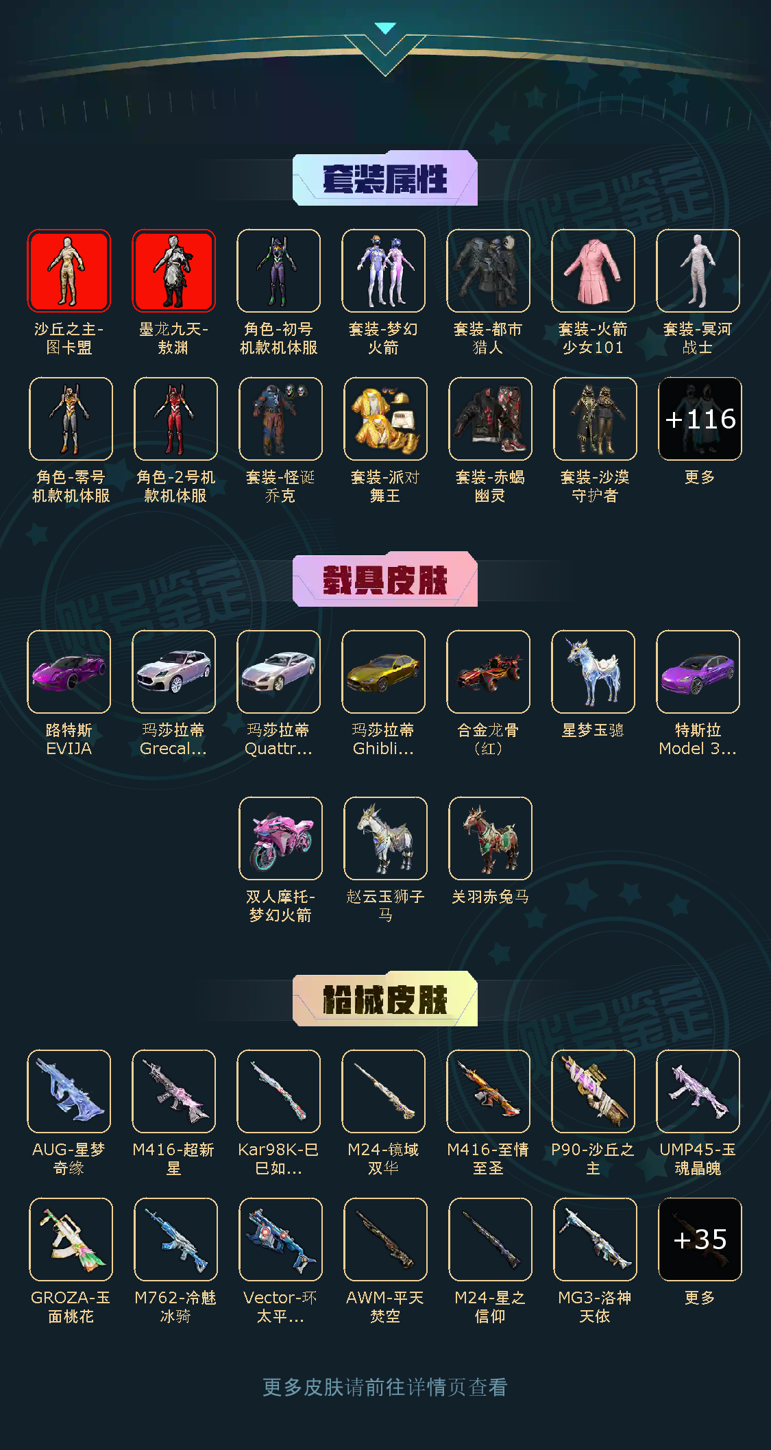 满级沙丘之主,满级木乃伊✨墨龙九天✨赵**✨老101✨3螳螂✨木乃伊✨小丑✨黑丝✨巡查衣✨黑丝✨赤蝎金鞋都市✨7把9级枪✨118粉46特10车✨全素材✨满级玛莎✨诡面斩面具