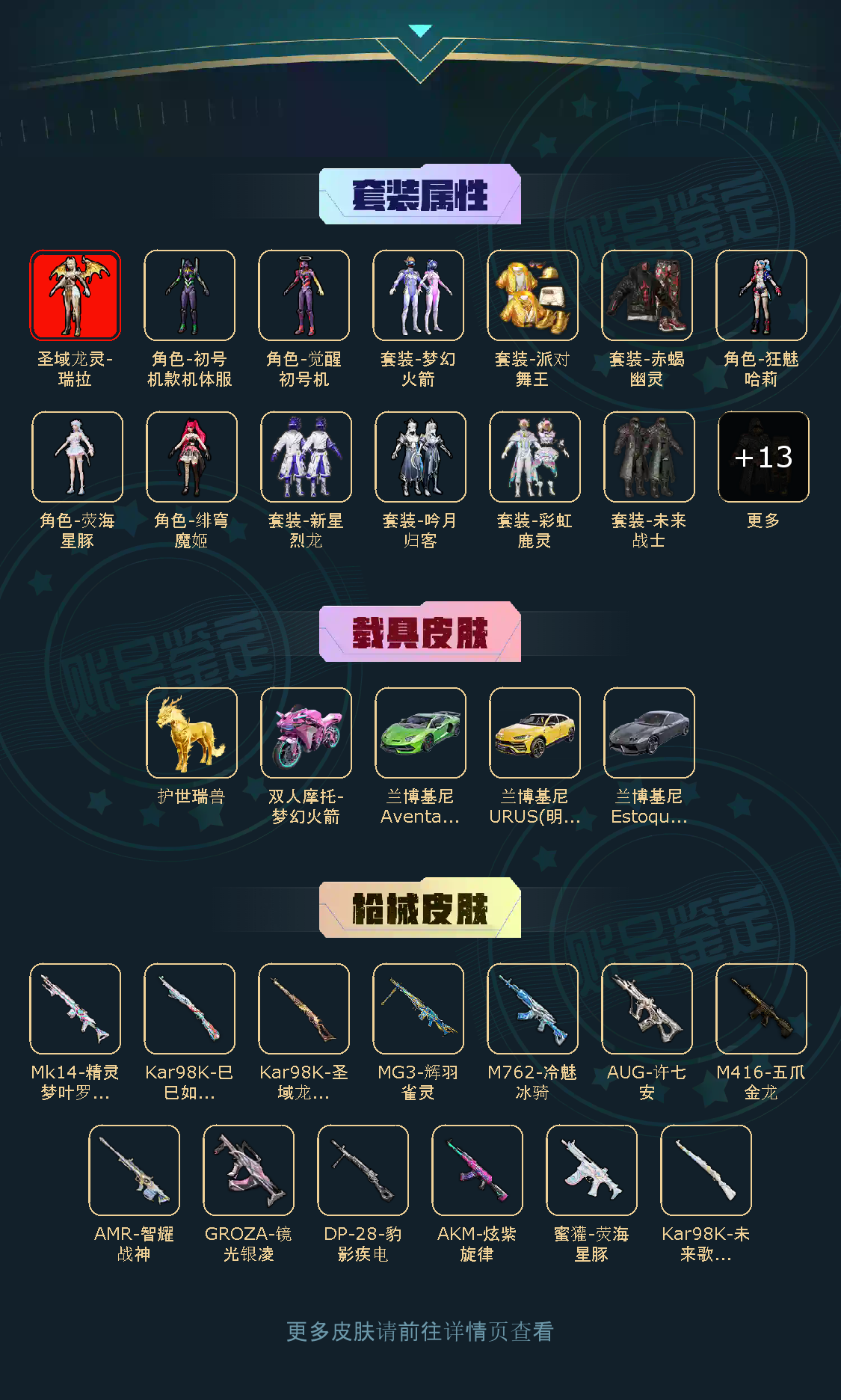 【稀有资产】圣域龙灵-瑞拉[2级]/角色-初号机款机体服/角色-Mark.06/角色-明日香款战斗服/角色-零款战斗服/套装-派对舞王/套装-赤蝎幽灵/套装-奇异狩猎者/套装-暗影哥特/套装-龟仙人/角色-许七安/角色-临安公主/角色-怀庆长公主/套装-恶魔人蛛/套装-沙丘之歌
