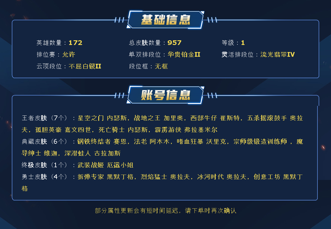 ~~喜欢记得收藏~~可排位~~ 999皮全英雄~~租之前尽量查一下游戏ID,确保段位是您需要的,避免浪费您的时间~~请勿挂机逃跑故意送人头,谢谢合作,谢谢~~