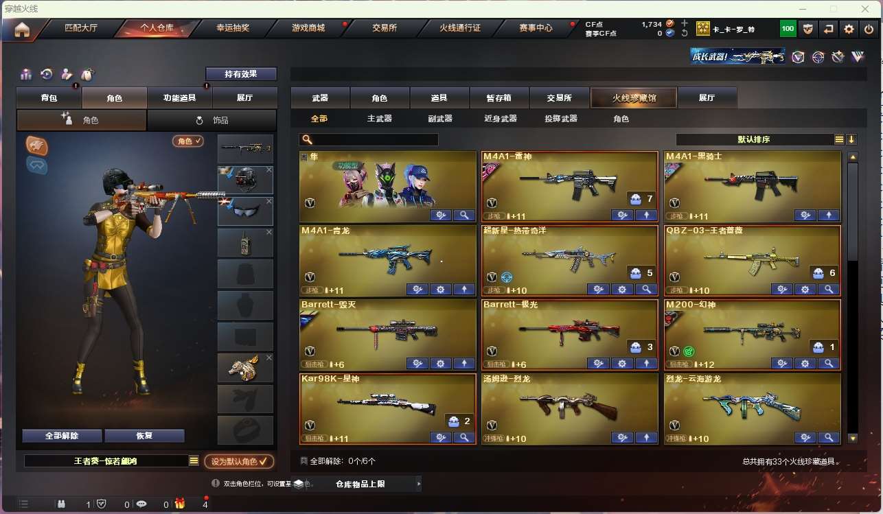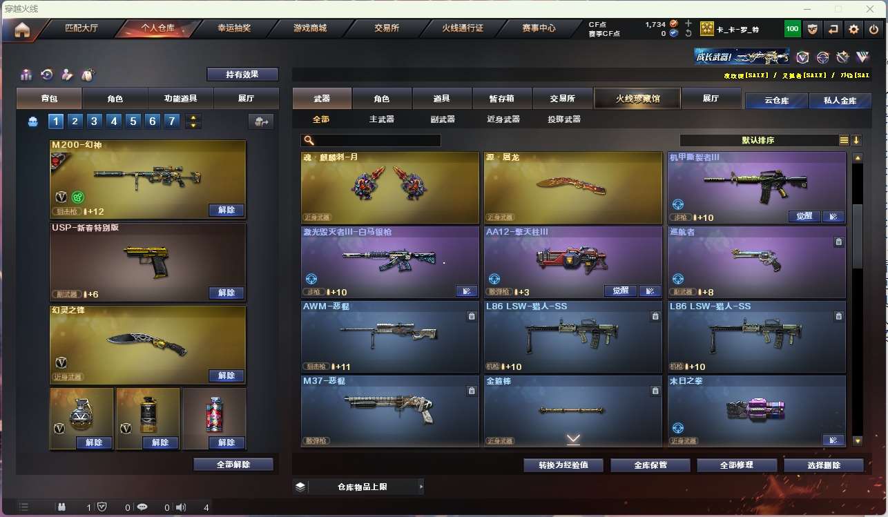m200幻神+电流骇客+n9皮肤】【98k星神】【qbz王者蔷薇】【雷神+s18冠军+宠儿皮肤】【黑骑士+卡】【毁灭+ag15冠军】【极光】 【武器:青龙 烈龙*2】 【5手呛:修罗*3 天神 】 【5刀具:龙啸 麒麟刺 幻灵之峰 】 【雷套:幻灵雷】 【音效卡:黑骑士音效卡 】 【四防角色:王者葵惊若翩鸿 】【隼