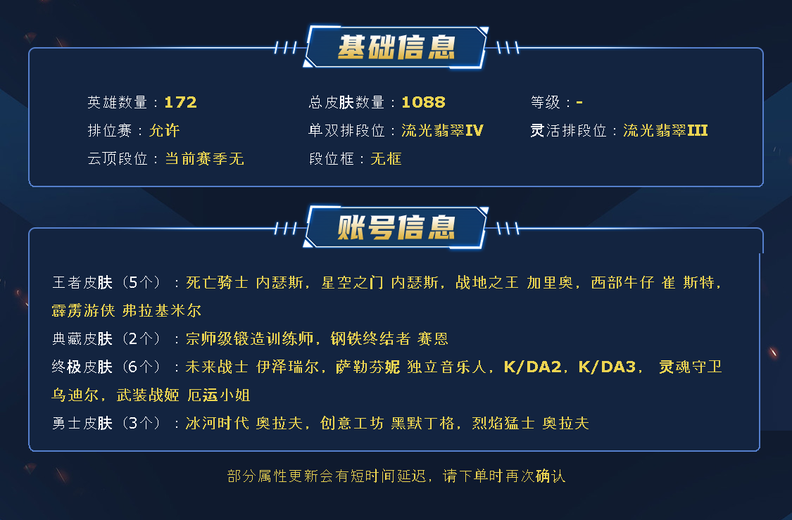 【德玛西亚】1088P丨27神话至臻丨神龙李青丨EDG冠军套丨霸天丨神王丨黑夜亚索丨至臻卡莎泽丽剑魔