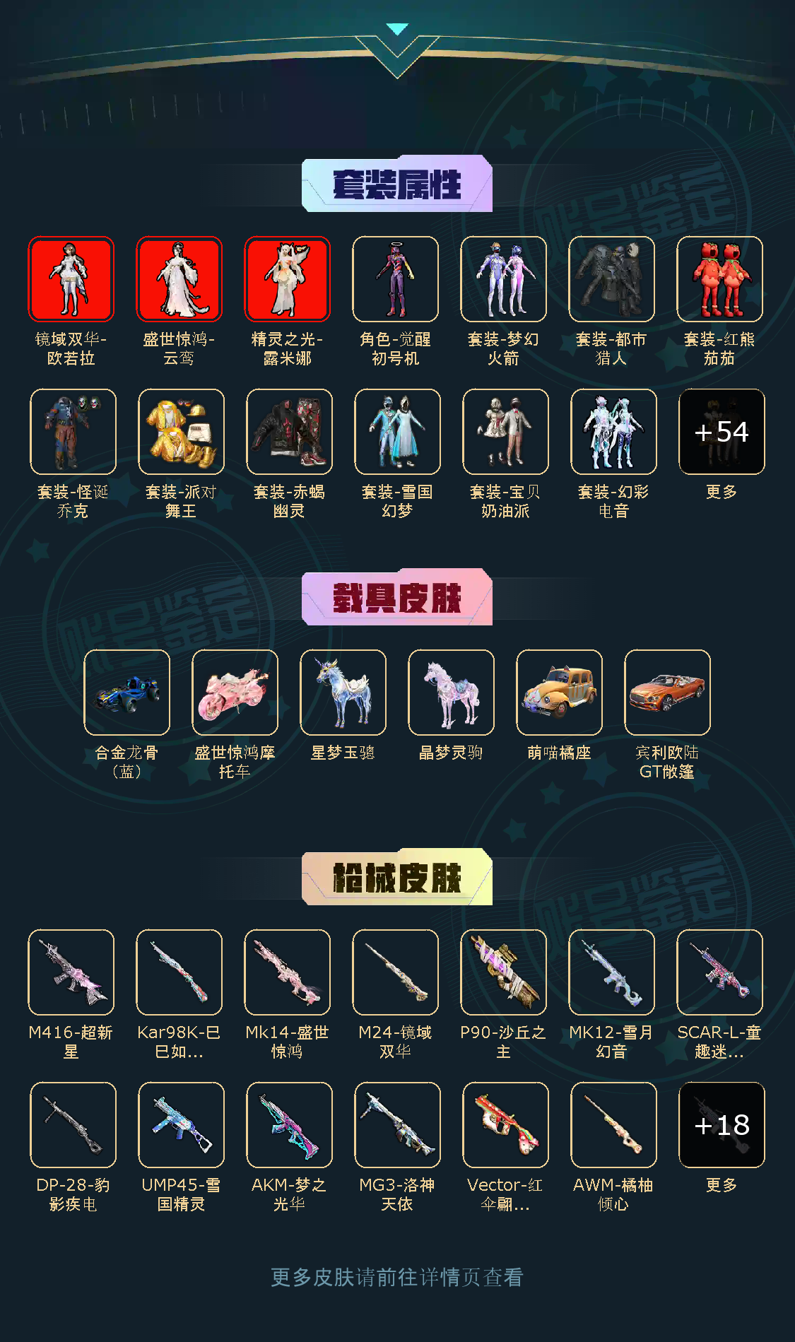 63粉,6载具,312套装,15王牌印记,无敌战神历史最高段,167135热力值 平底锅-林间仙鹿/SCAR-L-童趣迷兔/GROZA-香水柠檬/M416-暖熊萌萌/GROZA-精灵之光/M416-墨龙九天/GROZA-焦糖拿铁/M762-甜蜜誓约/M416-超新星/AKM-梦之光华/SPAS-12-蜜语绒猫/M417-第五大道/Mk14-盛世惊鸿/MK12-雪月幻音/M249-彩虹甜喵/MG3-洛神天依/DP-28-千金淑猫/DP-28-豹影疾电/Vector-红伞翩翩/汤姆逊-星月云朵/P90-金丰海韵/UMP45-宇宙意志/AKS-74U-信仰神谕/P90-粉樱探戈/UMP45-雪国精灵/P90-沙丘之主/烟雾弹-丁香清露/破片手榴弹-粉粉猫爪/Kar98K-巳巳如意/AWM-橘柚倾心/M24-镜域双华/宾利欧陆GT敞篷(火焰橘)/萌喵橘座/合金龙骨(蓝)/星梦玉骢/晶梦灵驹/盛世惊鸿摩托车/