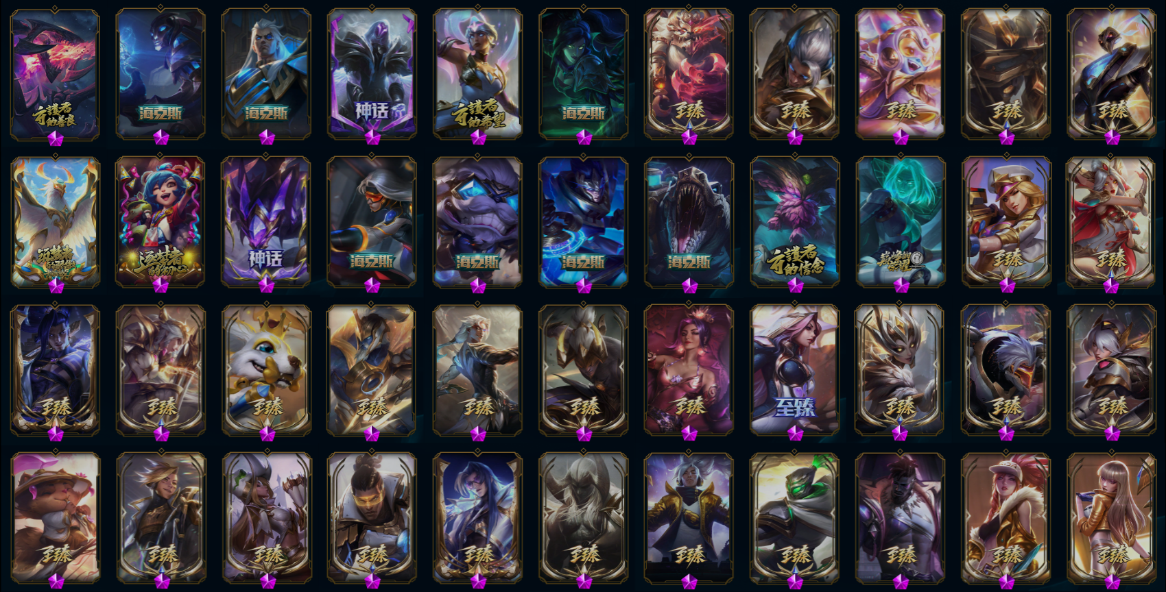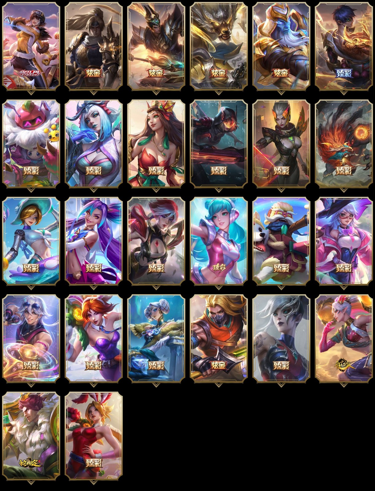【重要皮肤】心之钢永恩至臻 墨之影武者亚索至臻 绝息圣堂厄运小姐至臻 剪纸仙灵希维尔至臻 至高天奎桑提至臻 神凰行者烈羽焰凰霞至臻 女帝黛安娜至臻 太空律动璐璐至臻 魔女婕拉至臻 未来战士卢锡安至臻 真实伤害亚索至臻 真实伤害赛娜至臻 灵魂莲华提莫至臻 灵能特工伊泽瑞尔至臻 源计划阴劫至臻 王国机神玄武盖伦至臻 神龙尊者炎龙瑟提至臻 黑夜使者凯隐至臻 神龙尊者均衡之龙沃利贝尔至臻 征服者贾克斯至臻 飞升战神潘森至臻 KDA二代卡莎至臻 KDA一代卡莎至臻 KDA卡莎2022至臻 KDA阿卡丽至臻 电玩女神凯特琳至臻 电玩女神凯特琳2022至臻 魅惑女巫厄运小姐至臻 魅惑女巫厄运小姐2022至臻 源计划正义艾瑞莉娅至臻 源计划正义艾瑞莉娅2022至臻 真实伤害奇亚娜至臻 绒毛菲兹至臻 绒毛菲兹2022至臻 腥红之月亚托克斯至臻 腥红之月亚托克斯2022至臻 未来战士锤石至臻 未来战士锤石2022至臻 黑夜使者李青至臻 黑夜使者李青2022至臻 灰烬骑士派克 海克斯科技雷克顿 海克斯科技斯维因 海克斯科技吉格斯 海克斯科技玛尔扎哈 海克斯科技嘉文四世 海克斯科技阿木木 水晶掠夺者卡兹克 永恒之森奥恩 暗星科加斯 黎明使者卡尔玛 摄魂使者薇恩 新创战纪希维尔 胜利剑圣易 胜利女神娑娜 胜利之王泰达米尔 胜利巨口克格莫 哥特萝莉安妮 舞会公主安妮 钢铁军团拉克丝 生化领主泰达米尔 荣誉使者玛尔扎哈 养蜂人辛吉德 勇敢的心德莱厄斯 电玩勇者锐雯 电玩女神阿狸 玉剑传说舞剑仙 灵能特工易 剪纸仙灵烬 龙的传人李青 天龙之子卡莎 天龙之子斯莫德 龙腾虎跃瑟提 替父从军花木兰 你看见过我的熊猫吗安妮 北辰之威内瑟斯 南天之怒沃里克 美猴王孙悟空 虎痴之拳蔚 司马懿仲达 神龙之翼库奇 王国机神青龙德莱文 王国机神白虎贾克斯 福牛守护者厄斐琉斯 胜利之树茂凯 胜利机器人布里茨 胜利女神奥莉安娜 胜利枪神格雷福斯 胜利枪神卢锡安 胜利之剑亚托克斯 怦然心动凯特琳 水晶玫瑰阿克尚 觅心游侠卢锡安 觅心魔灵奥莉安娜 觅心之翼奎因 冬季仙境奥莉安娜 雪球也能爆炸吉格斯 圣诞捣蛋鬼金克丝 冰雪风暴希维尔 魄罗骑士瑟庄妮 平安夜女神娑娜 圣诞糖果棒厄运小姐 魅惑女巫迦娜 魅惑女巫崔丝塔娜 魅惑女巫伊莉丝 死亡誓约维克托 泳池派对辛德拉 泳池派对奥莉安娜 泳池派对塔莉垭 泳池派对菲奥娜 泳池派对李青 泳池派对雷克顿 电玩战魂赫卡里姆 送披萨的小姐姐希维尔 制胜金球拉莫斯 FPX李青 iG卡蜜尔 SSG霞 SSG纳尔 SKTT1娜美 SKTT1奥拉夫 SKTT1卡莉丝塔 SKTT1雷克顿 SSW雷恩加尔 SSW图奇 SSW辛吉德 SKTT1贾克斯 SKTT1劫 SKTT1婕拉 SKTT1李青 暗杀星蒙多 暗杀星努努和威朗普 暗杀星慎 Fnatic迦娜 Fnatic库奇 Fnatic古拉加斯 Fnatic卡尔萨斯 冰雪节格雷福斯 冰雪节玛尔扎哈 冰雪兽纳尔 防暴士兵格雷福斯 防暴士兵辛吉德 防暴天使凯尔 钢铁之翼艾尼维亚 冠军典狱长锤石 冠军之刃锐雯 冠军之刃锐雯2016 冠军之志瑞兹 春晖大帝锤石 鬼影森森茂凯 鬼影重重魔腾 海贼瑞兹 胡桃夹子萨科 惊悚派对费德提克 警用试作体K9内瑟斯 蓝色忧郁崔斯特 魅惑女巫娜美 南瓜头费德提克 女猎手希维尔 圣诞精灵崔丝塔娜 圣诞开心鬼提莫 圣诞狂欢基兰 圣诞狂欢努努和威朗普 圣诞老人古拉加斯 圣诞玩偶波比 圣诞驯鹿克格莫 糖果使徒费德提克 外星装甲库奇 无头骑士赫卡里姆 喜庆之树茂凯 邪恶圣诞老人维迦 幸福女神乐芙兰 雪默丁格 雪装奈德丽 野兽猎人泰达米尔 勇者阿狸 勇者奈德丽 征服者阿利斯塔 暗影沃里克 2021全球总决赛嘉文四世 波比的巧克力工坊 地底世界崔斯特 都铎王朝图奇 十五周年纪念希维尔 十周年纪念安妮 源代码乐芙兰 神凰行者瑞羽圣凰艾尼维亚 胜利凤凰艾尼维亚 斗魂觉醒莎弥拉 暗裔英雄盖伦 大元素使拉克丝 灵魂守卫乌迪尔 未来战士伊泽瑞尔 武装战姬厄运小姐 绝息圣堂洛