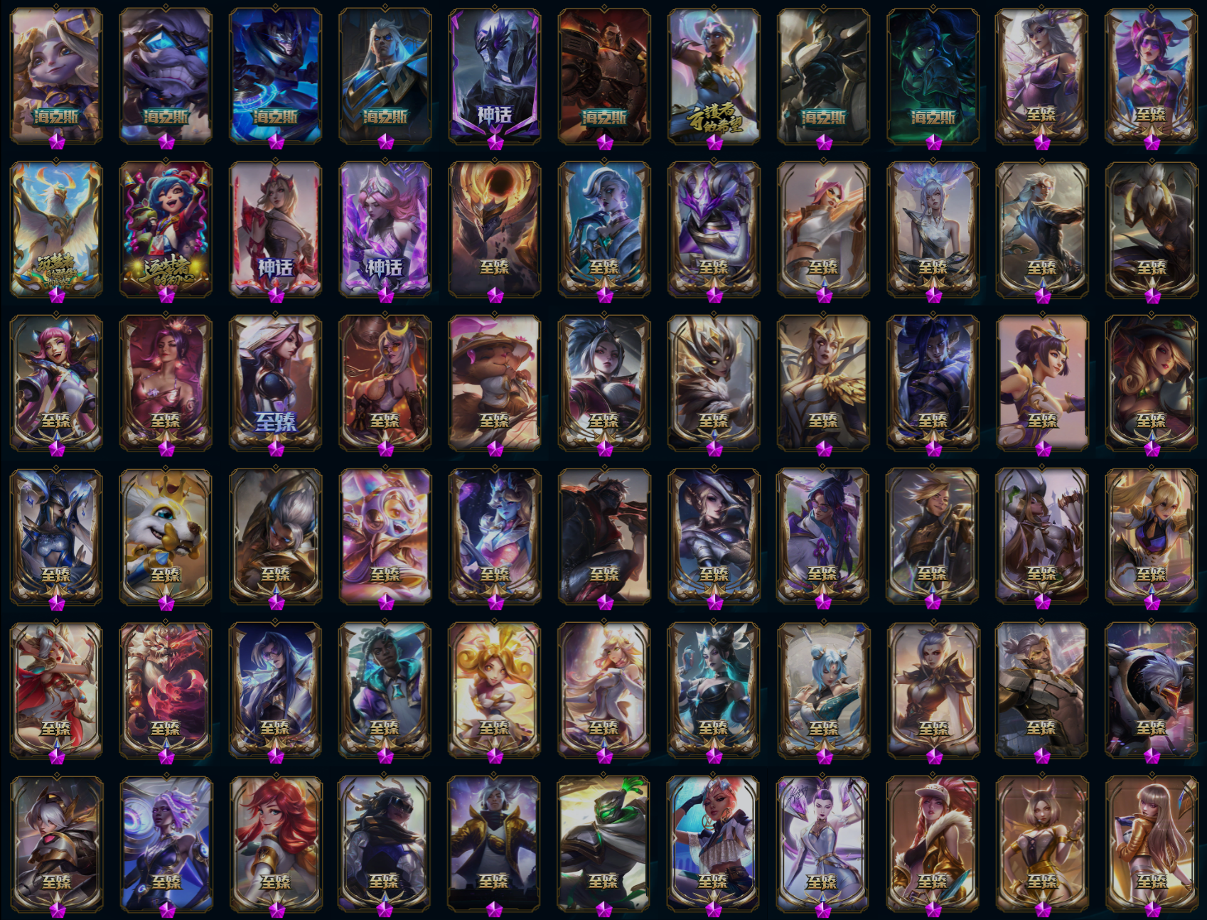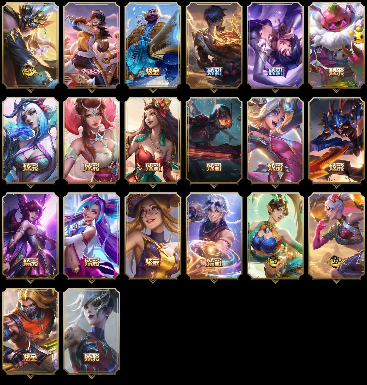 【重要皮肤】幻灵狮心蕾欧娜至臻 西部魔影伊芙琳至臻 北极星钢影卡蜜尔至臻 心之钢永恩至臻 魔女阿卡丽至臻 玉剑传说琴仙子至臻 斗魂觉醒萨科至臻 DRX亚托克斯至臻 墨之影武者亚索至臻 花仙使者卡特琳娜至臻 绝息圣堂厄运小姐至臻 剪纸仙灵希维尔至臻 青花瓷丽桑卓至臻 太空律动魔音海妖娜美至臻 至高天奎桑提至臻 灵魂莲华易至臻 海珀利安小队X09星环灵风迦娜至臻 星之守护者辛德拉至臻 星之守护者艾克至臻 西部魔影猎天使恶魔泰隆至臻 月蚀骑士赛娜至臻 幻灵战斗猫金克丝至臻 青花瓷拉克丝至臻 神凰行者烈羽焰凰霞至臻 魅惑女巫莫甘娜至臻 战斗学院蕾欧娜至臻 太空律动璐璐至臻 魔女婕拉至臻 魔女乐芙兰至臻 真实伤害亚索至臻 真实伤害赛娜至臻 星之守护者索拉卡至臻 灵魂莲华提莫至臻 灵能特工伊泽瑞尔至臻 福牛守护者菲奥娜至臻 源计划逆流塞拉斯至臻 源计划阴劫至臻 暗星墨菲特至臻 神龙尊者炎龙瑟提至臻 黑夜使者凯隐至臻 神龙尊者均衡之龙沃利贝尔至臻 征服者贾克斯至臻 KDA二代卡莎至臻 KDA一代卡莎至臻 KDA阿狸至臻 KDA阿卡丽至臻 战斗学院拉克丝至臻 战斗学院拉克丝2022至臻 烈焰美人薇恩至臻 魅惑女巫厄运小姐至臻 魅惑女巫厄运小姐2022至臻 星之守护者妮蔻至臻 源计划正义艾瑞莉娅至臻 真实伤害奇亚娜至臻 真实伤害奇亚娜2022至臻 绒毛菲兹至臻 绒毛菲兹2022至臻 玉剑传说武剑仙至臻 玉剑传说武剑仙2022至臻 黑夜使者李青至臻 黑夜使者李青2022至臻 灰烬杀手塞拉斯 海克斯科技安妮 海克斯科技斯维因 海克斯科技吉格斯 海克斯科技嘉文四世 海克斯科技崔丝塔娜 水晶圣骑艾希 水晶圣骑蕾欧娜 黎明使者卡尔玛 恐惧新星德莱厄斯 零之枪骑赫卡里姆 摄魂使者薇恩 胜利剑圣易 胜利女神娑娜 胜利之王泰达米尔 胜利巨口克格莫 创星之灵璐璐 电玩女神厄运小姐 电玩女神阿狸 星之守护者伊泽瑞尔 玉剑传说无影 玉剑传说舞剑仙 玉剑传说舞龙卫 玉剑传说星仙子 玉剑传说翼剑仙 星之守护者佐伊 黎明使者薇恩 点心宝贝阿木木 天龙之子黛安娜 天龙之子迦娜 天龙之子卡莎 天龙之子李青 天龙之子斯莫德 天龙之子伊泽瑞尔 天龙之子易 神龙烈焰金克丝 碧玉之牙卡西奥佩娅 春晖神女拉克丝 北辰之威内瑟斯 南天之怒沃里克 美猴王孙悟空 定海神珍孙悟空 玉净夜叉凯特琳 紫金罗刹莫甘娜 广寒仙子嫦娥 虎痴之拳蔚 张辽文远 金猪烈焰瑟庄妮 烈焰美人薇恩 王国机神朱雀蕾欧娜 胜利女神瑟庄妮 胜利之树茂凯 胜利机器人布里茨 胜利女神奥莉安娜 胜利枪神格雷福斯 胜利枪神卢锡安 胜利之剑亚托克斯 水晶玫瑰迦娜 碎心之拳蔚 甜心之羽霞 甜心之翎洛 甜心宝贝安妮 甜心宝贝娑娜 穿心之剑菲奥娜 觅心女王艾希 觅心之翼奎因 觅心猫猫悠米 幽梦玫瑰辛德拉 水晶玫瑰婕拉 冬境仙灵索拉卡 寒冬精灵璐璐 圣诞捣蛋鬼金克丝 圣诞老人德莱文 冰雪驯鹿波比 冬季仙境卡尔玛 魄罗骑士瑟庄妮 夺命美人卡特琳娜 平安夜女神娑娜 圣诞糖果棒厄运小姐 魅惑女巫迦娜 魅惑女巫厄运小姐 伯爵卡萨丁 大魔法锅布里茨 灵魂收割者索拉卡 克烈古拉伯爵 泳池派对凯特琳 泳池派对佐伊 泳池派对嘉文四世 泳池派对菲奥娜 御星魔矢艾希 创战纪希维尔 克格汪 制胜金靴李青 制胜金球拉莫斯 EDG悠米 iG卡蜜尔 iG洛 iG卡莎 iG艾瑞莉娅 iG乐芙兰 iG菲奥娜 SSG霞 SSG洛 SKTT1扎克 SKTT1烬 SKTT1娜美 SKTT1艾克 SKTT1奥拉夫 SKTT1阿兹尔 SKTT1伊莉丝 SSW雷恩加尔 SSW泰隆 SSW图奇 SSW辛吉德 SKTT1贾克斯 SKTT1婕拉 SKTT1李青 SKTT1薇恩 暗杀星蒙多 Fnatic迦娜 Fnatic库奇 Fnatic古拉加斯 Fnatic嘉文四世 冰雪节辛吉德 防暴士兵辛吉德 防暴天使凯尔 钢铁之翼艾尼维亚 冠军掠夺者卡兹克 冠军之矛卡莉丝塔 冠军之刃锐雯2016 冠军之血希瓦娜 鬼影重重魔腾 胡桃夹子萨科 惊悚派对阿木木 警用试作体K9内瑟斯 蓝色忧郁崔斯特 魅惑女巫娜美 蒙多蒙多 南瓜头费德提克 圣诞精灵崔丝塔娜 圣诞开心鬼提莫 圣诞狂欢基兰 圣诞老人古拉加斯 圣诞玩偶波比 圣诞驯鹿克格莫 卧虎藏龙贾克斯 无头骑士赫卡里姆 喜庆之树茂凯 邪恶圣诞老人维迦 幸福女神乐芙兰 雪默丁格 野兽猎人瑟庄妮 野兽猎人泰达米尔 英勇玩具兵普朗克 征服者卡尔玛 征服者诺提勒斯 征服者韦鲁斯 暗影沃里克 冠军之箭艾希 诺斯费拉图弗拉基米尔 阿木木主人不要我了 波比的巧克力工坊 都铎王朝图奇 十周年纪念安妮 源代码乐芙兰 神凰行者瑞羽圣凰艾尼维亚 胜利凤凰艾尼维亚 DJ娑娜 大元素使拉克丝 武装战姬厄运小姐 KDAALLOUT萨勒芬妮独立音乐人 KDAALLOUT萨勒芬妮明日新星 KDAALLOUT萨勒芬妮超级巨星 绝息圣堂洛 魔女娜美