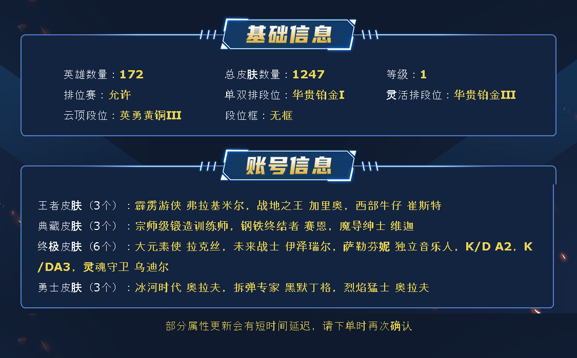 ~~喜欢记得收藏~~可排位~~1122皮全英雄~~租之前尽量查一下游戏ID,确保段位是您需要的,避免浪费您的时间~~请勿挂机逃跑故意送人头,谢谢合作,谢谢~~