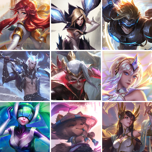 【重要头像】爱情之歌 心型钥匙 觅心之翼奎因 雪花 萨勒芬妮超级巨星 萨勒芬妮独立音乐人 玉剑传说寒潭夭夭炫彩 勇者阿狸炫金 我麦是开的么 青花瓷拉克丝 魅惑女巫厄运小姐 星守卡莎炫彩 幻灵战斗队长厄运小姐 灵魂莲华阿狸炫彩 星守金克丝炫彩 灵魂莲华索拉卡炫彩 电玩女神厄运小姐 女帝迦娜 女帝迦娜炫彩 西部天使赛娜神话炫彩 至臻太空律动娜美 至臻海珀利安小队迦娜 至臻星之守护者辛德拉 至臻海之歌萨勒芬妮 至臻幻灵战斗猫金克丝 至臻魅惑女巫莫甘娜 至臻太空律动璐璐 至臻福牛守护者菲奥娜 至臻星之守护者索拉卡