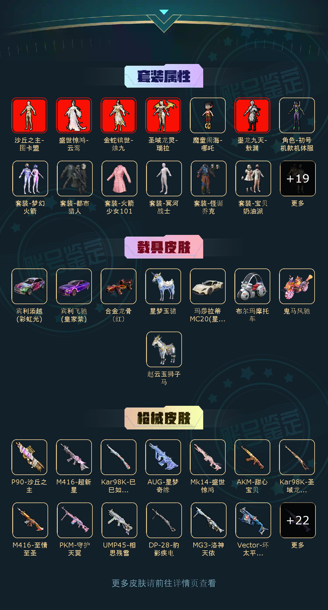 29粉,8载具,271套装,24王牌印记,无敌战神历史最高段,200769热力值 平底锅-林间仙鹿/AKM-甜心宝贝/SCAR-L-童趣迷兔/AUG-星梦奇缘/AUG-星之彼岸/GROZA-香水柠檬/M416-五爪金龙/AKM-魔法神域/M416-墨龙九天/M416-至情至圣/AUG-妙趣可丽/SCAR-L-机甲封神/M416-超新星/蜜獾-辉耀战甲/AKM-梦之光华/SCAR-L-魔童闹海 哪吒/Mk14-盛世惊鸿/Mk14-闲梦青缨/DP-28-暗夜鎏金/M249-彩虹甜喵/PKM-守护天翼/DP-28-圣堂之誓/MG3-洛神天依/DP-28-豹影疾电/UZI-绮梦青鸾/汤姆逊-怪笑疯兔/P90-甜蜜草莓/Vector-环太平洋/UMP45-相思残雪/P90-沙丘之主/烟雾弹-猫咪绅士/破片手榴弹-粉粉猫爪/Kar98K-圣域龙灵/AWM-花间之火/Kar98K-巳巳如意/宾利飞驰(皇家紫)/宾利添越(彩虹光)/鬼马风驰/合金龙骨(红)/玛莎拉蒂MC20(星石白)/星梦玉骢/赵云玉狮子马/照夜玉狮子/布尔玛摩托车/