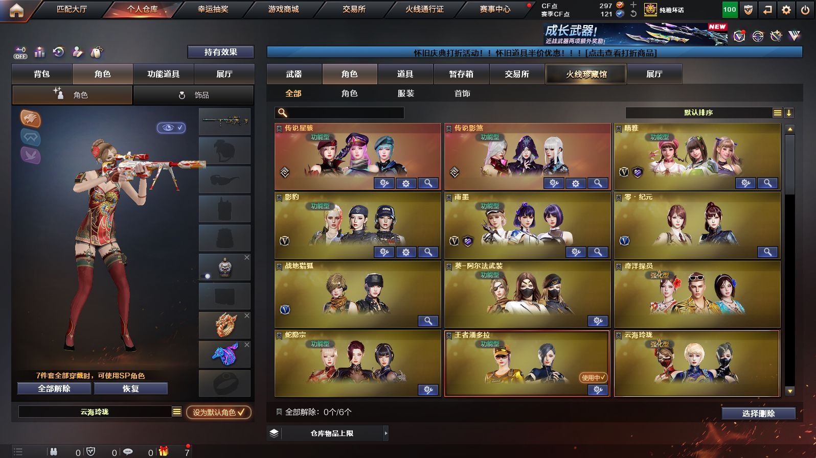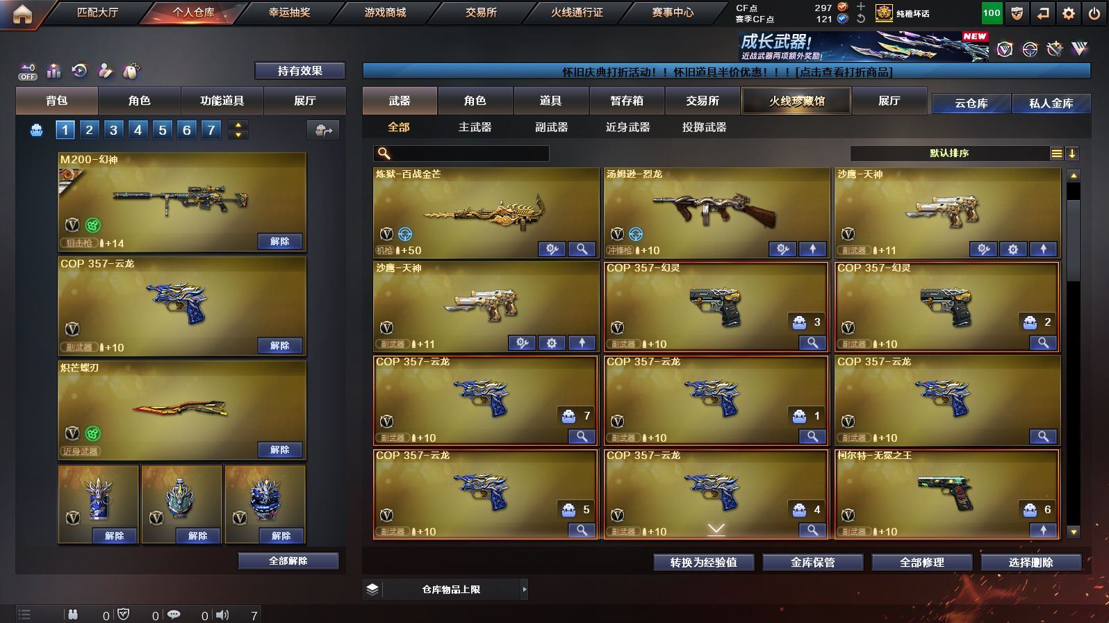 《4防影煞》《传说星骇》《m200幻神+n9+ag皮+丹凤+音效卡》《裁决+流光秘银+异化之源+音效卡》《王者星霆》《金蚀》《cop幻灵 cop云龙 柯尔特无冕之王 世冠柯尔特 1911大黄蜂》《炽芒碟刃》《幻灵套 云龙套》《白虎》《qbz天罚》《王者风势》《qbz王者蔷薇》《qbz金色蔷薇》《烈火》《毁灭》《火麒麟》《雷神》《朱雀蛇隐宗 火麒麟零纪元 雷神小红 迷你律动酷熊 m37葵》《金刚伞》《4防晴雅 4防影豹 4防雨墨 奇洋探员满配 蛇隐宗满配 云海玲珑 4防王者潘多拉 兰梨园特工》《b s战队炫彩背包 edg炫彩背包 超级背包》《qbz天罚音效卡 qbz金色蔷薇音效卡 awm昌龙怀旧音效卡 白虎音效卡 雷神音效卡 黑骑士音效卡 毁灭音效卡 炼狱百战金芒庆典舞曲音效卡》《qbz03cfs2024 烈火熔核 雷神女团皮 雷神拼搏 雷神脉冲核心 白虎热带奇洋 白虎巅峰荣耀 雷神宇航兔 毁灭战神张飞 毁灭cfs2018 雷神cfs2019