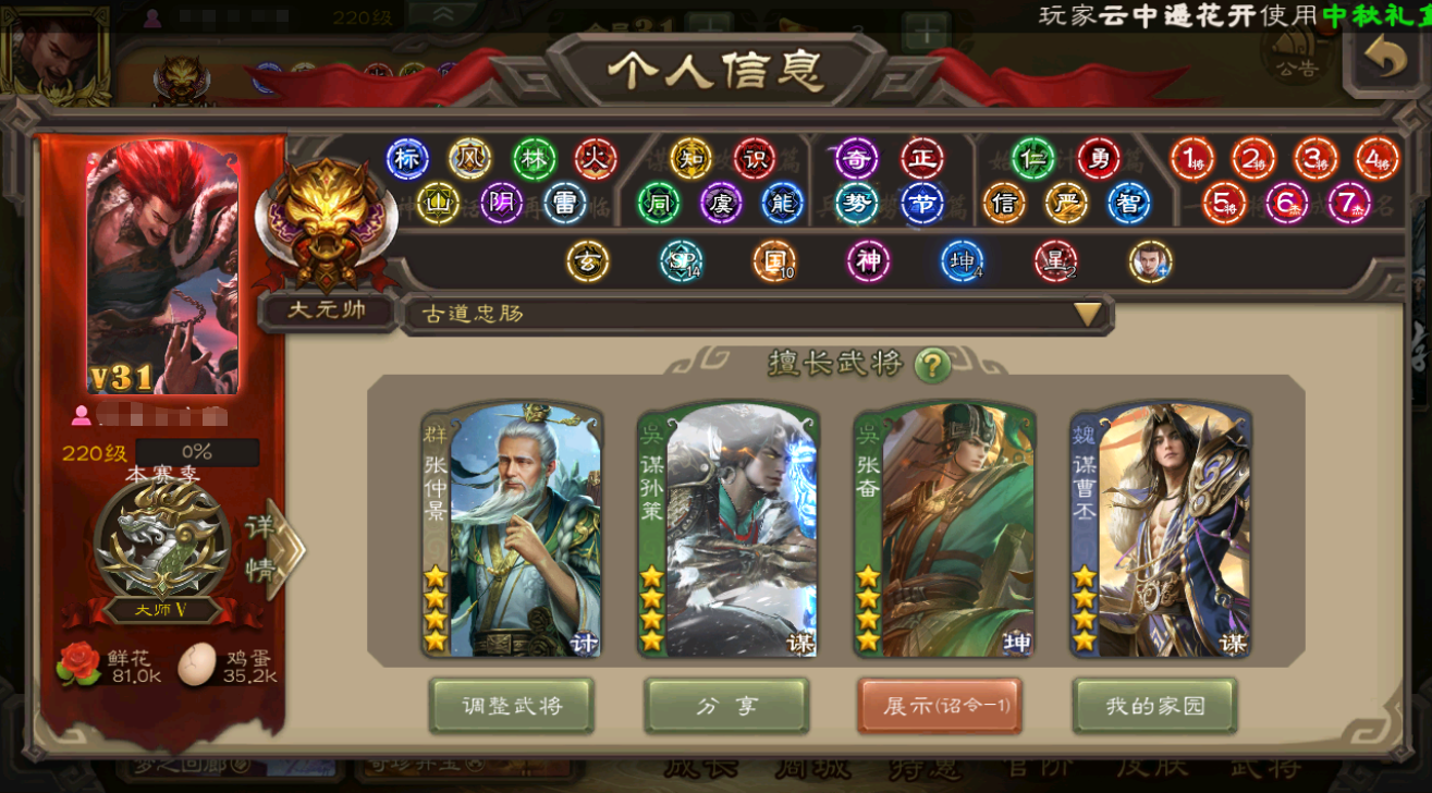 (动曹髦回廊曹髦枭龙破渊)(崔芙)(荡然由心鲁肃)(谋乱长安*贾诩)(蒋济)(动郭女王回廊郭女王阙寒惊凤)(势辛宪英)(双形态谋关羽圣垂千古)(孟达)(动张仲景回廊张仲景药沐月华)(回廊动张奋辟山憾海)(回廊谋曹丕荡然由心)(回廊谋孙策傲凌绝顶)(势国渊)(笮融)(sp曹操)(势魏延)(回廊动十常侍朝花同袍)(回廊动神鲁肃青牛化圣)(一等大将军)(曹髦)(回廊动刘焉)(势太史慈)(苲融)(友诸葛亮)(双形态动十常侍)