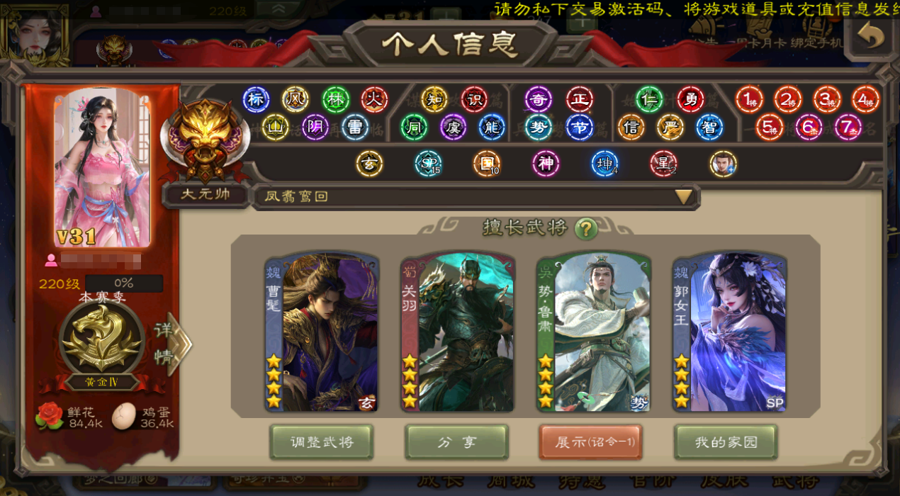 【全服排名榜一大元帅全灯全扩全武将全皮肤】