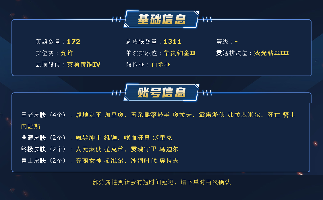 允许排位 -【德玛西亚】-1088皮 | 4幻想神话 | | 圣堂腕豪 | 龙瞎-4套冠军-1