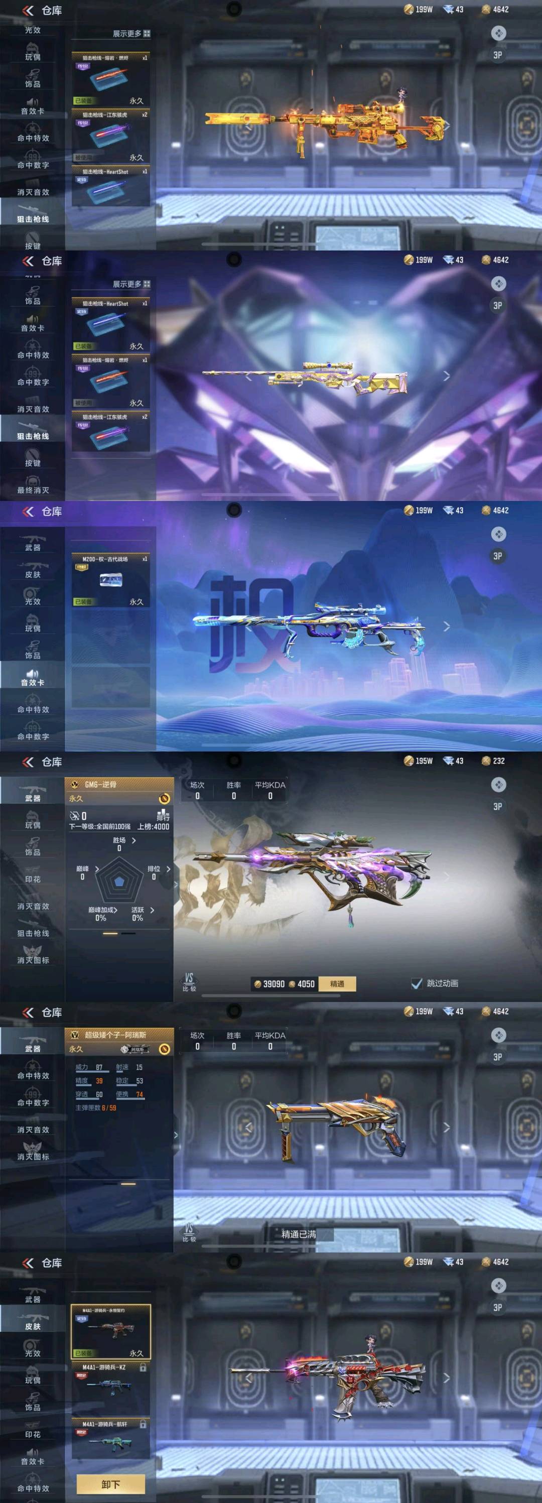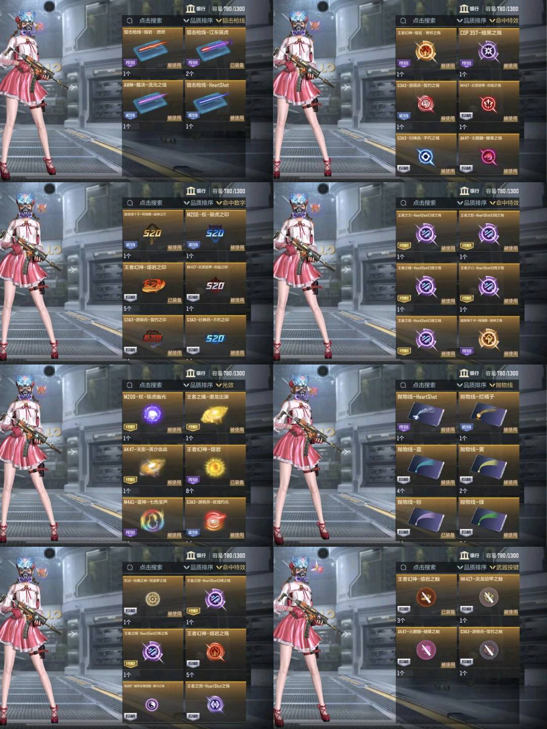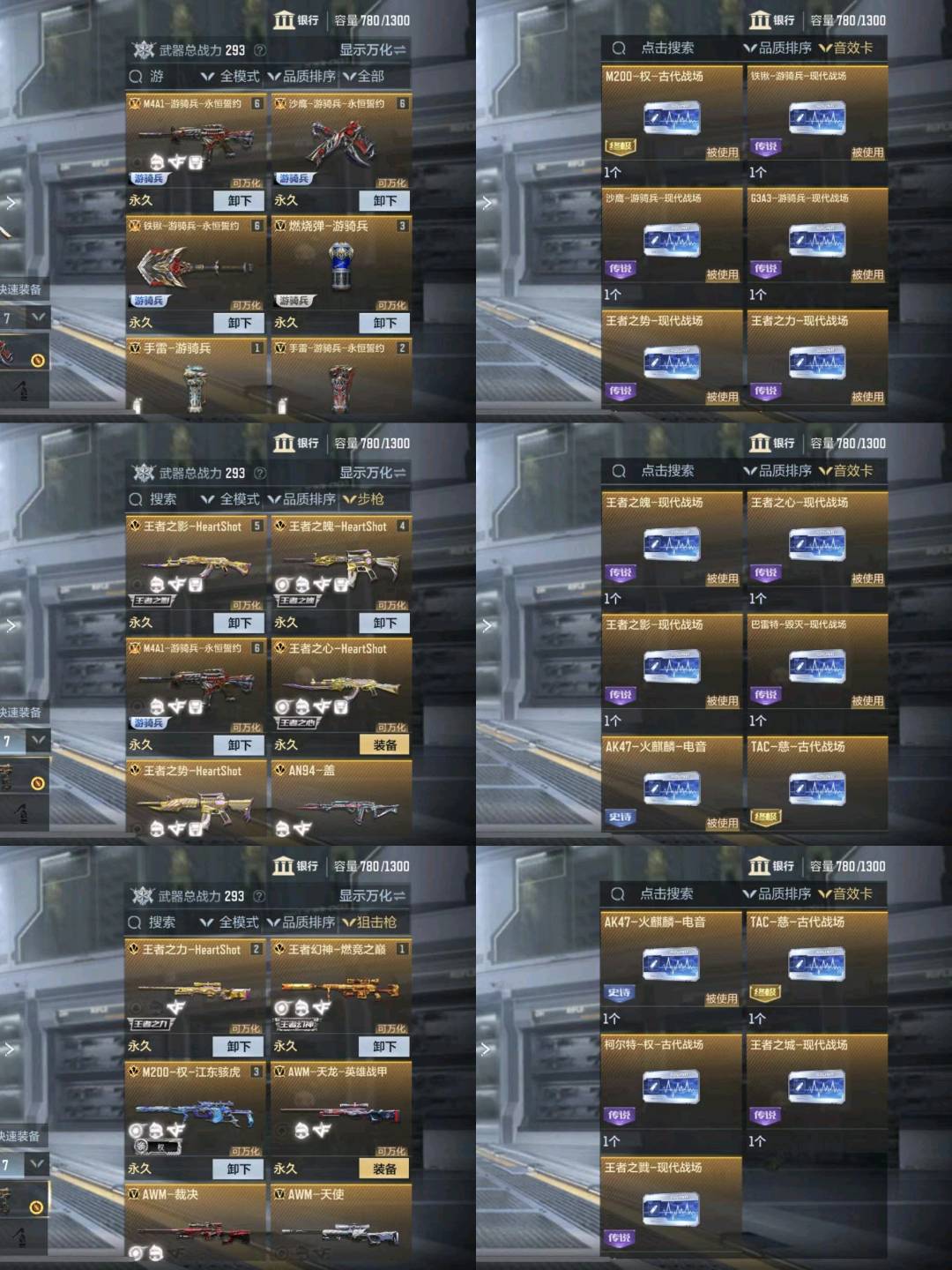 【王者武器】:王者之力/王者之影/王者之魄/王者之势/王者之魂/王者之心闪光弹/王者之影烟雾弹/王者之翼闪光弹/王者之势闪光弹/王者之刺/王者之心/王者之势烟雾弹/王者幻神 ;【热门皮肤】:王者幻神-燃竞之巅/M4A1-黑骑士-现代金属/王者之翼闪光弹-HeartShot/王者之影手雷-HeartShot/沙鹰-修罗-现代金属/双持柯尔特-极光-清凉夏日/M4A1-雷神-星空/王者之心烟雾弹-HeartShot/王者之翼手雷-HeartShot/王者之心闪光弹-HeartShot/王者之影烟雾弹-HeartShot/GM6-战争风云觉醒-千变/王者之狱-冰霜奇迹/巴雷特-极光-清凉夏日/王者之力-HeartShot/王者之戮-HeartShot/王者之心-HeartShot/屠龙-英雄战甲/M4A1-雷神-时空幻境/M4A1-黑龙-能量核心/蝴蝶刀-极光-清凉夏日/巴雷特-毁灭-暗月/擎天觉醒-现代金属/王者之影闪光弹-HeartShot/王者之心手雷-HeartShot/AWM-天龙-英雄战甲/TAC-慈-江东骇虎/王者之翼烟雾弹-HeartShot/巴雷特-极光-不屈老兵/M4A1-黑骑士-白马银枪/81式-光明之神-千变/AK47-黑武士觉醒-金属蜂巢/王者之影-HeartShot/王者之魄-HeartShot/AK47-火麒麟-心动糖果/M200-权-江东骇虎 ;【热门武器】:M12S-天公/加特林-蟒蛇/CZS2-仲康/寒霜烈龙/加特林-堡垒/HK417-炎龙铠甲/QBZ03-天罚/AWM-天龙/G3A3-游骑兵/M4A1-雷神/M4A1-死神/M4A1-游骑兵/M4A1-赛博雷神/沙鹰-游骑兵/匕首-冰魂觉醒/威虎碎魂刀/MAC-10-孟获/QSZ92-冰魂觉醒/蛮神巨斧/AWM-大湾溢彩/巴雷特-极光/M200-幻神/烈焰长矛/环刃-炫光掠影觉醒/铁锹-游骑兵/AUG-机械纪元/AN94-盖/98K-黑骑士/M200-权 ;【英雄角色】:关小雨/零新生/救世主X/九安X/虹儿/晴雅/云悠悠 ;【稀有道具】:王者之影-现代战场/王者之心-现代战场/TAC-慈-古代战场/王者之城-现代战场/王者之魄-现代战场/王者之力-现代战场/王者之势-现代战场/王者之戮-现代战场/AK47-火麒麟-电音/M200-权-古代战场/柯尔特-权-古代战场/巴雷特-毁灭-现代战场/消灭音效-赏金猎人/消灭音效-熔岩/狙击枪线-江东骇虎/狙击枪线-熔岩·燃烬/狙击枪线-HeartShot/AWM-裁决-流光之线