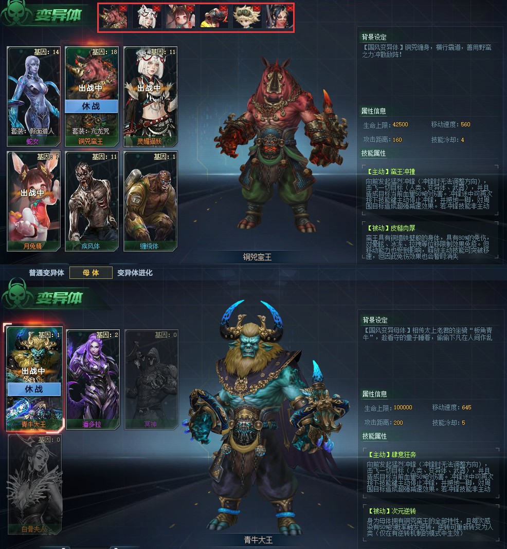 变异角色:灵媚猫妖、铜兕蛮王、飛鼠童子、缠丝洞主、潘多拉、月兔精、白蛇、子母寄生体、蛇女……