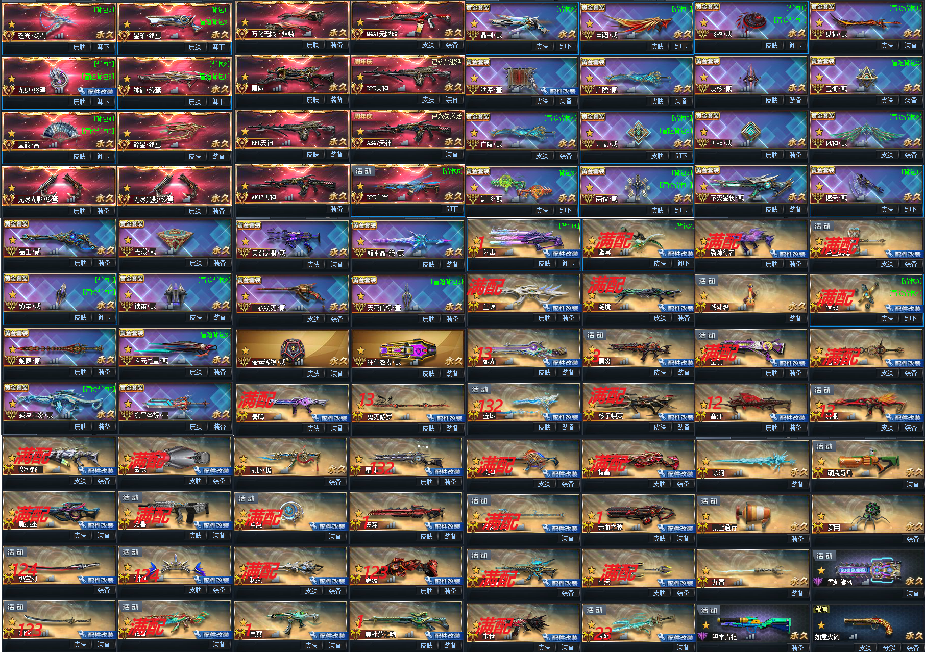 秦鸣满配 鬼刃13 闪击1 幽冥满配 尘埃满配 绝境满配 弧光13 黑炎3 连城123 核子满配 裂隙满配 战锤满配 战斗鸡 伏虎满配 尘羽满配 轮回满配 蛮牙12 炎凰13 赛博满配 玄武满配 魔杰座满配 万兽满配 极空刃124 翎羽124 幻锋123 伯言满配 无极 星斗123 月隐满配 天际1 寂灭满配 破魂123 岚翼1 美杜莎1 乾坤满配 棱晶满配 海神满配 赤血1 创世满配 玄天满配 末世满配 无踪23 冰河 骑兵 禁止通行 罗网 九霄 霓虹旋风 积木猎枪 火铳
