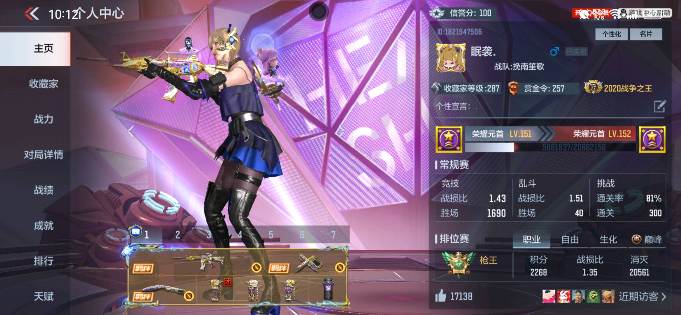 - 职业排位段位: 枪圣