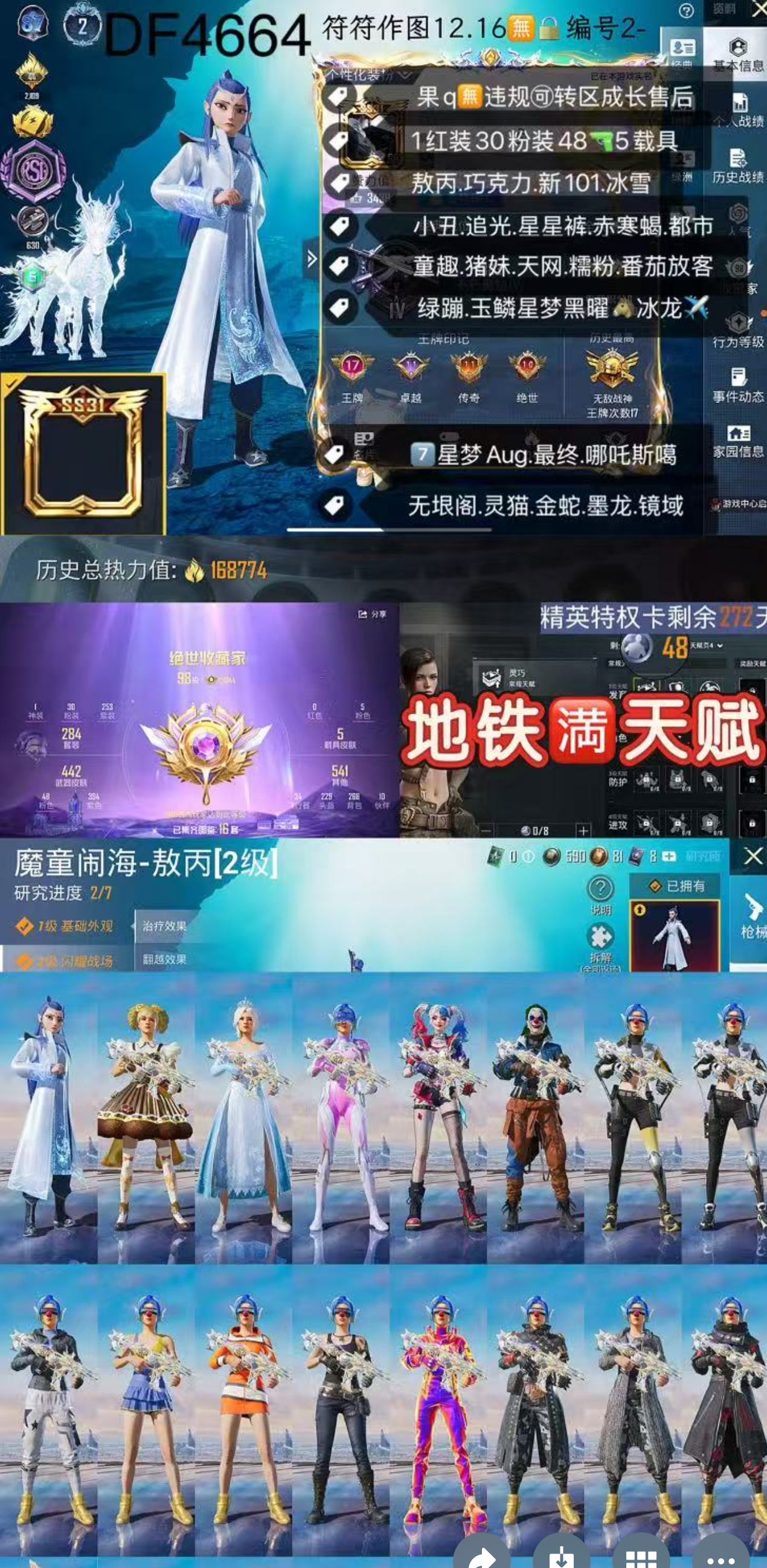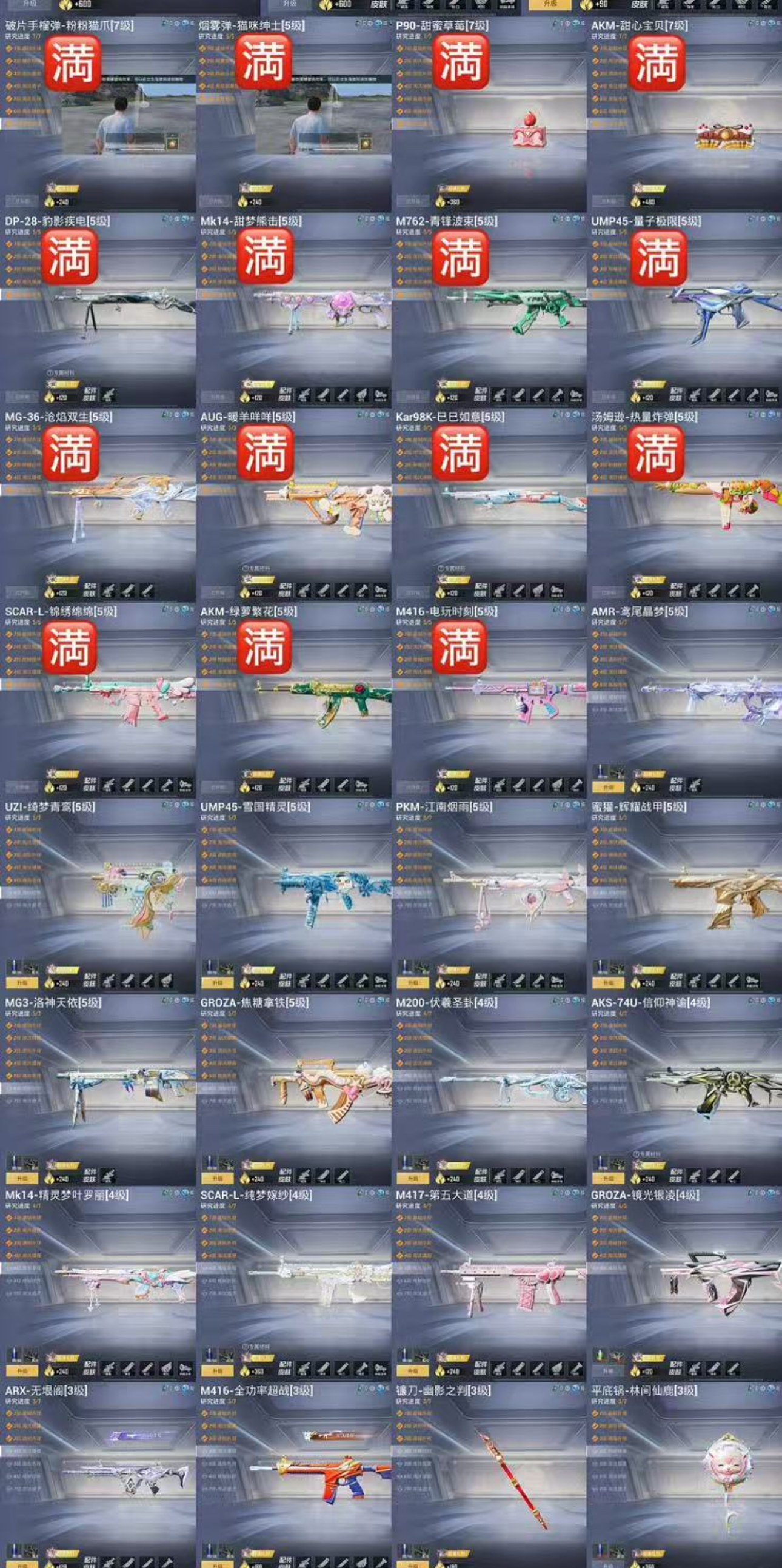 2级熬丙雪国新101巧克力/小丑都市赤蝎金鞋天网追光队服/7级星梦奇缘AUG/战神框/1红30粉48特4载具